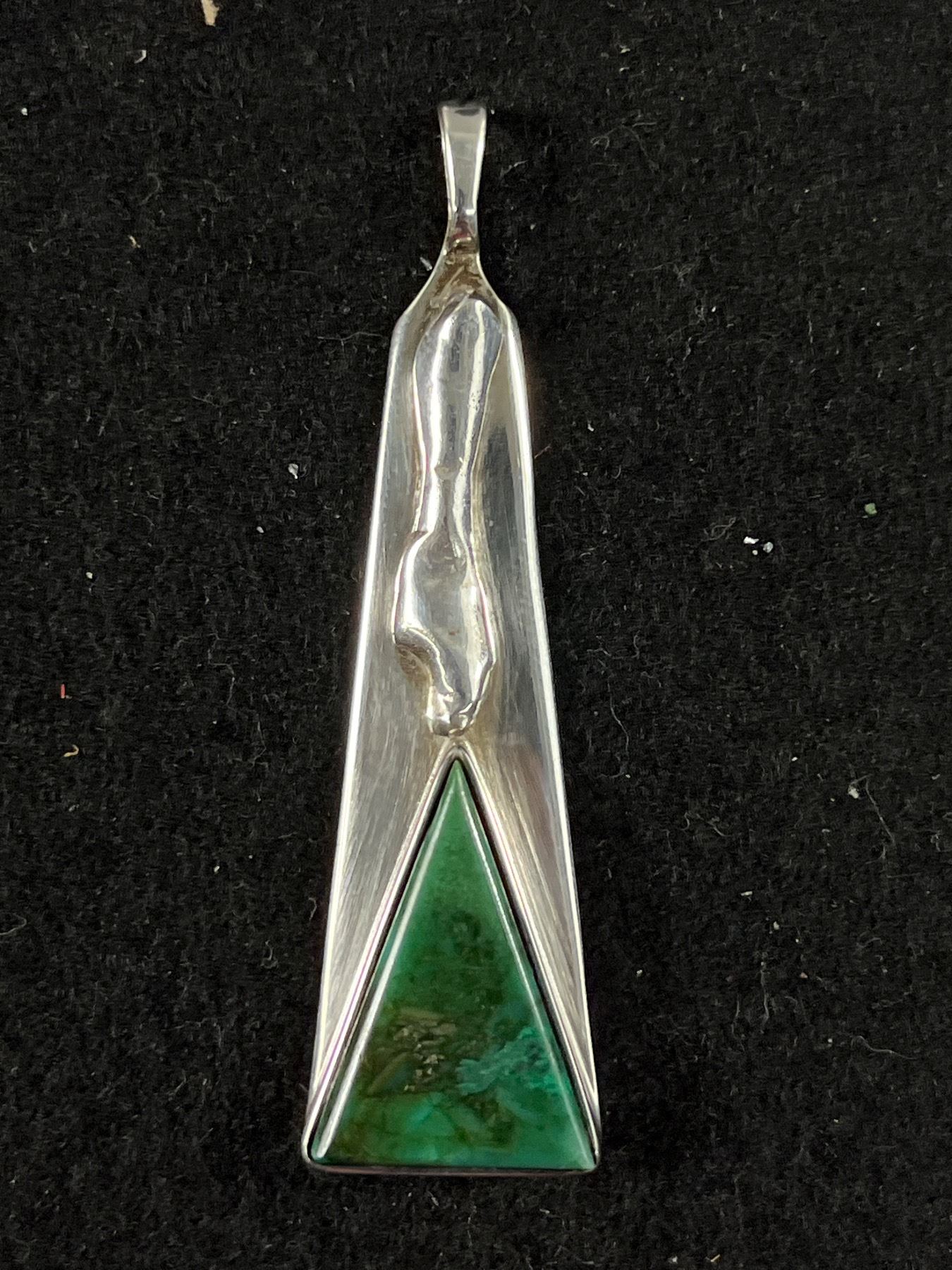 Nice Sterling Silver with Turquoise Stone Free Form Pendant ( tested) Excellent Condition