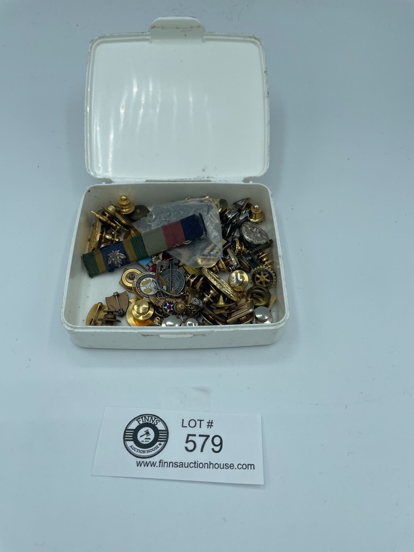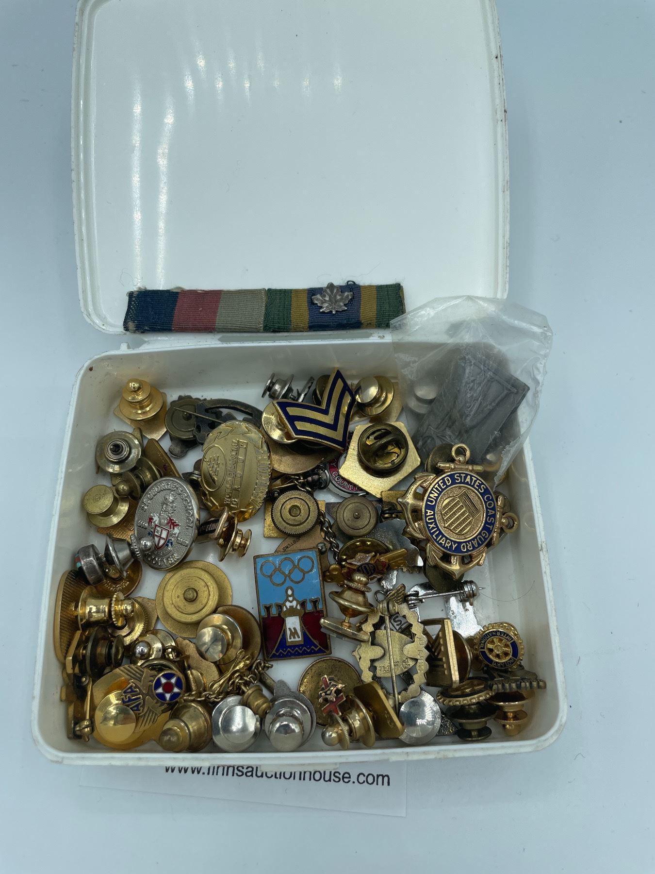 Nice Tray Lot fo Vintage Pins, Militaria Etc