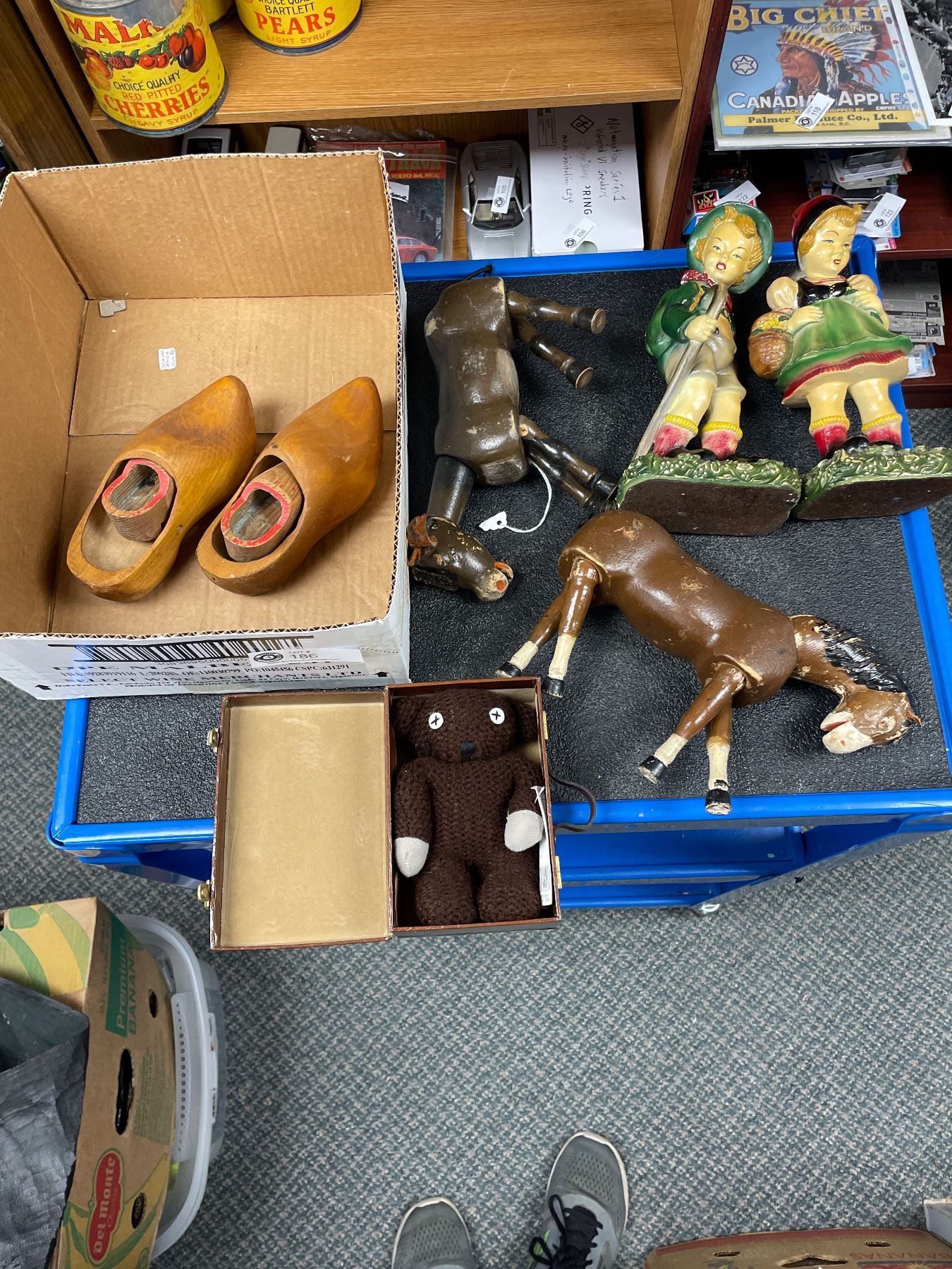 Nice Tray Lot of Various Vintage Items. Wooden Shoes, Horses, etc