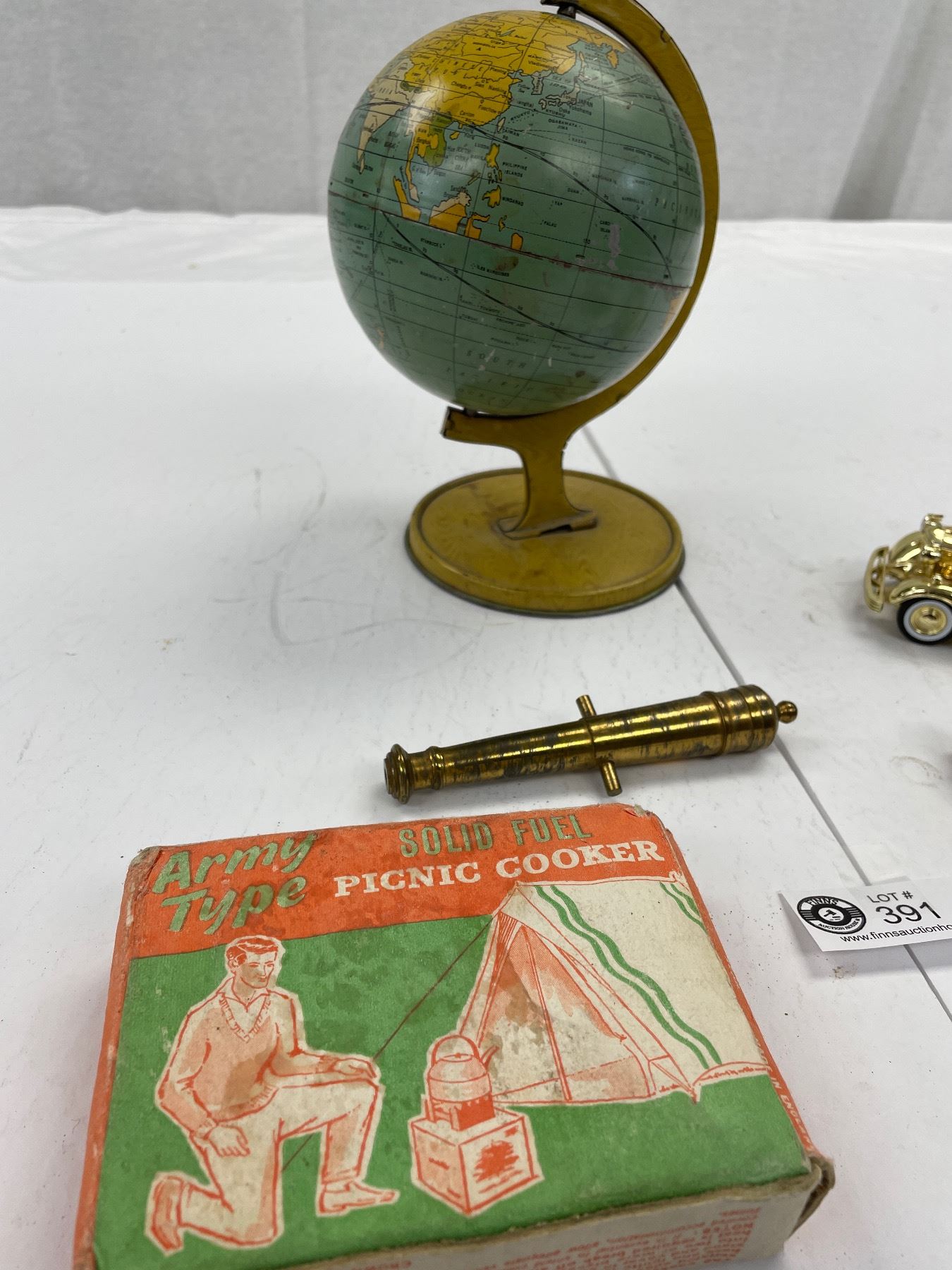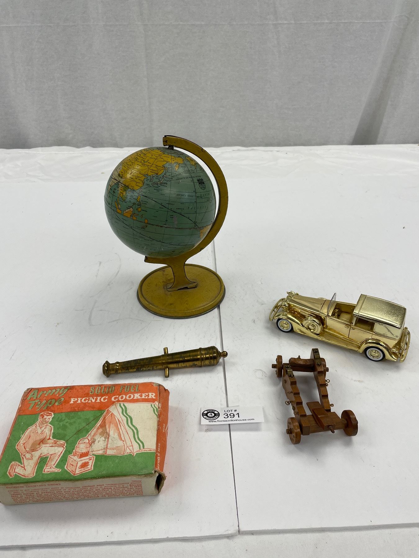 Nice Vintage Collectible Lot Small Globe Brass Cannon etc