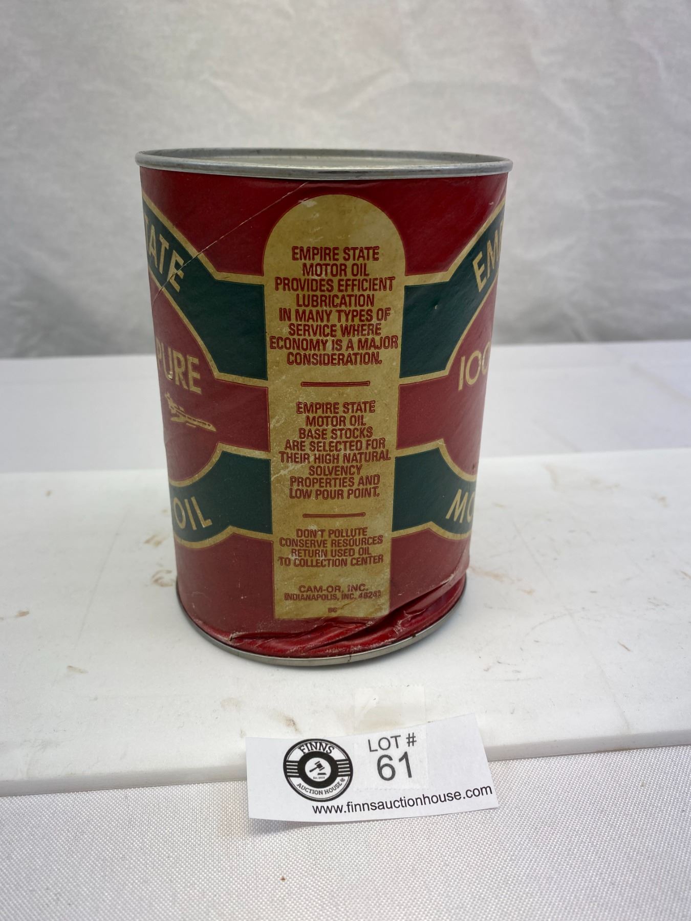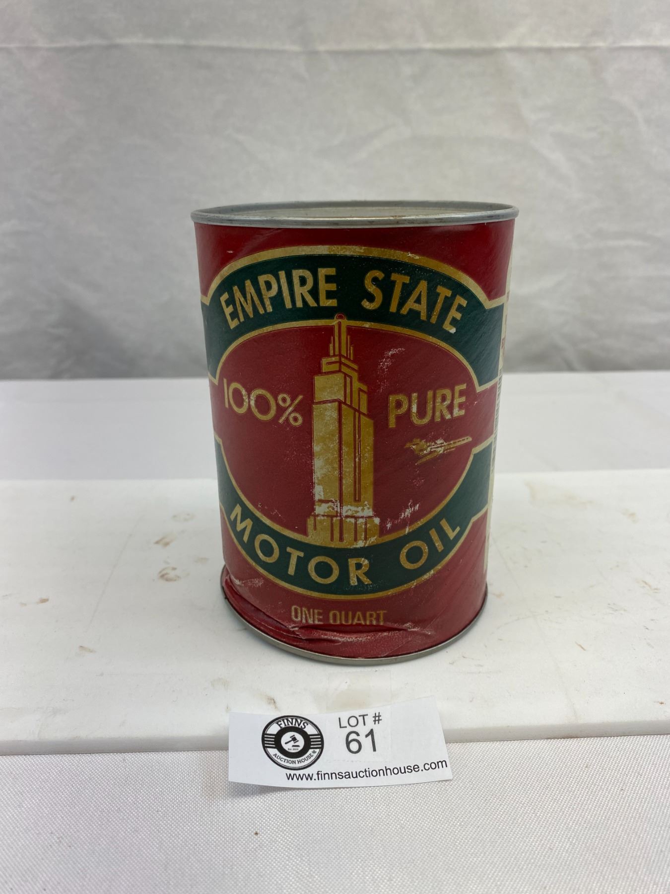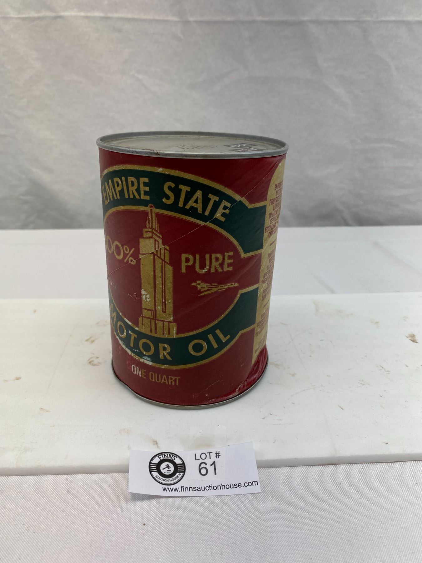 Nice Vintage Empire State 100% Pure Motor Oil 1 Quart, Cardboard, Dented Bottom