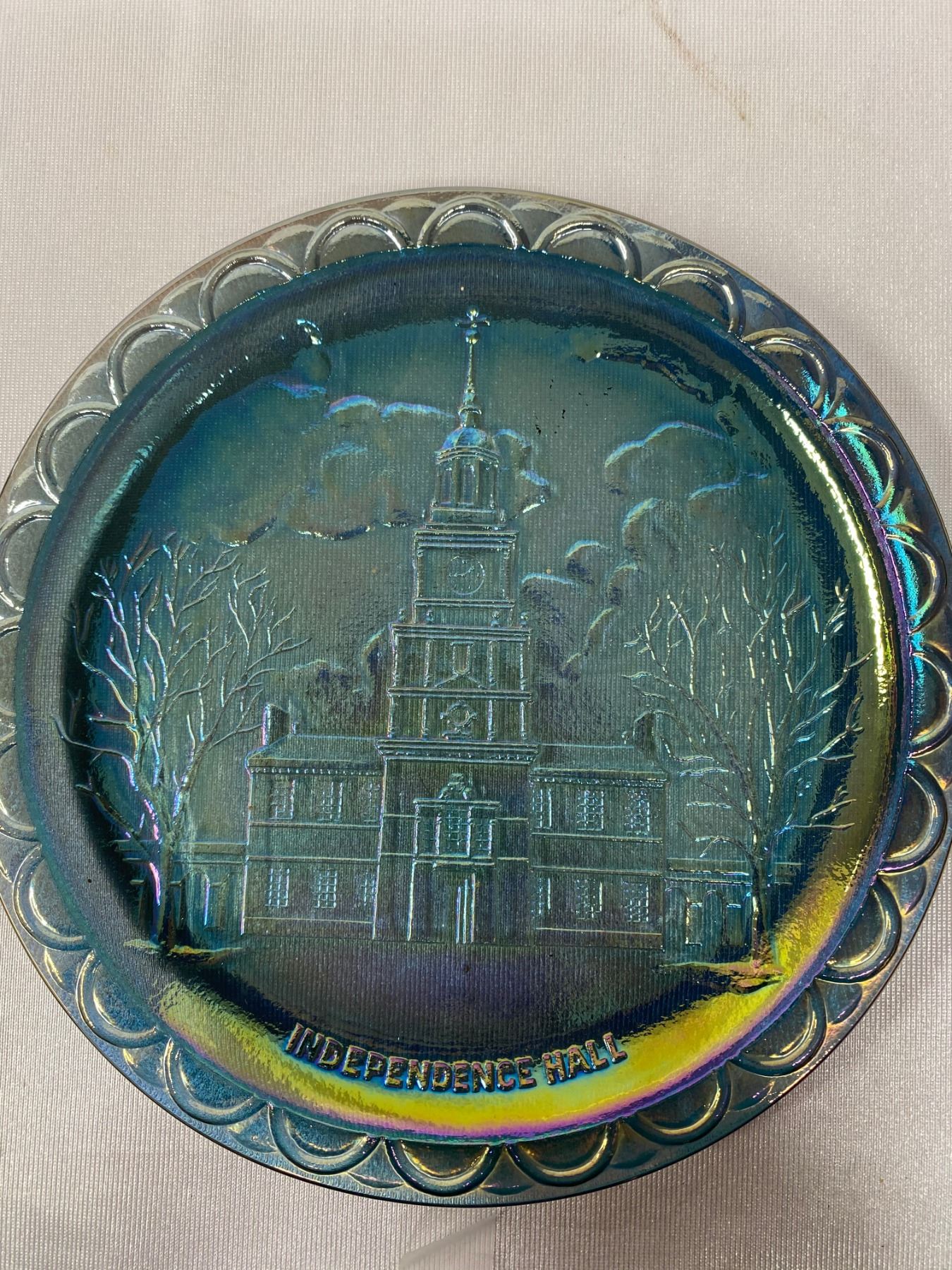 Nice Vintage Independent Hall 8" Diameter Carnival Glass Plate Fenton