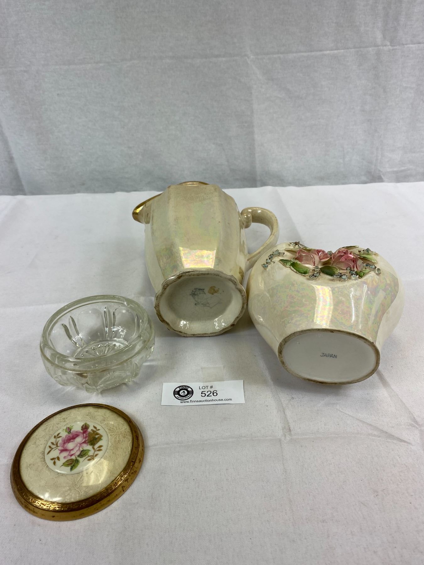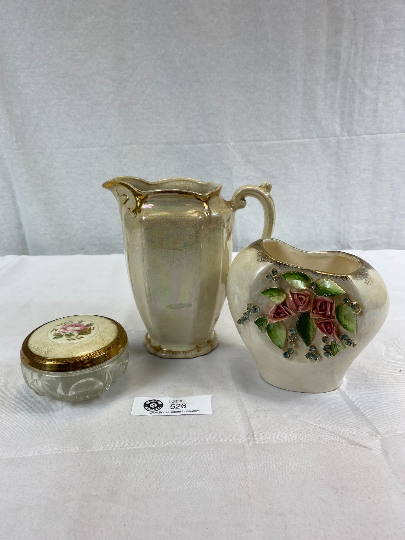 Nice Vintage Made In Japan Home Décor Lot With Nice Luster, Vase, Pitcher, And Lidded Jar