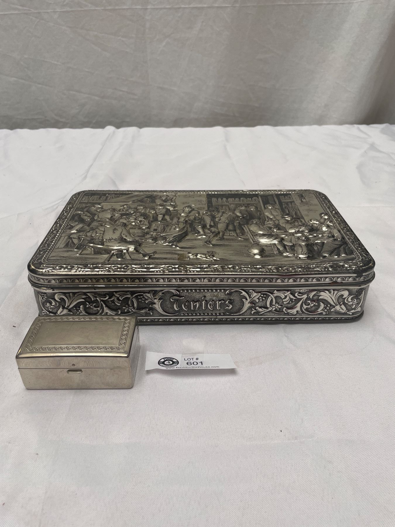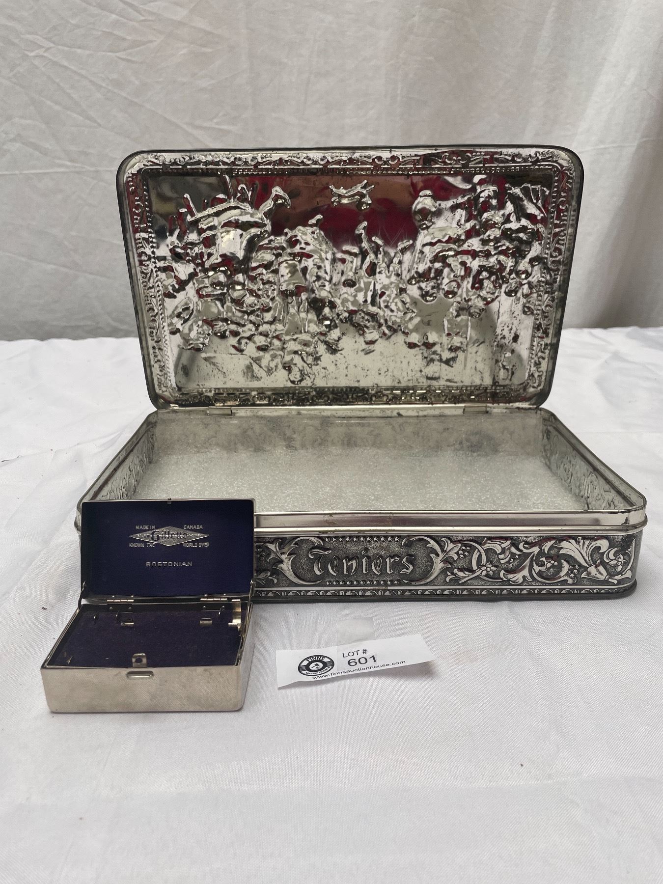 Nice Vintage Teniers Embossed Tin With Old Gillette Razor Box
