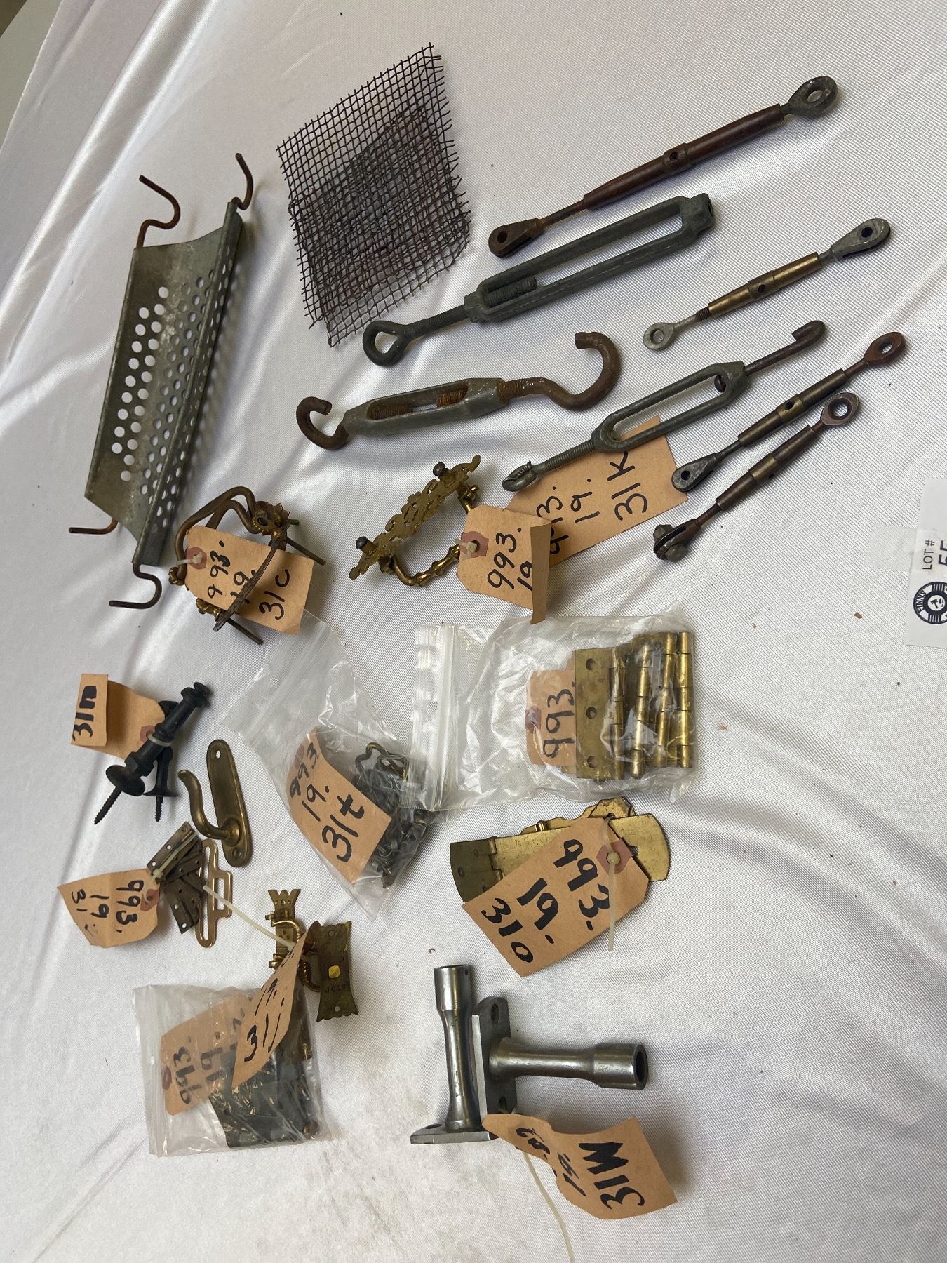 NiceVintage Collectible Tray Lot with Brass Door Pulls Etc