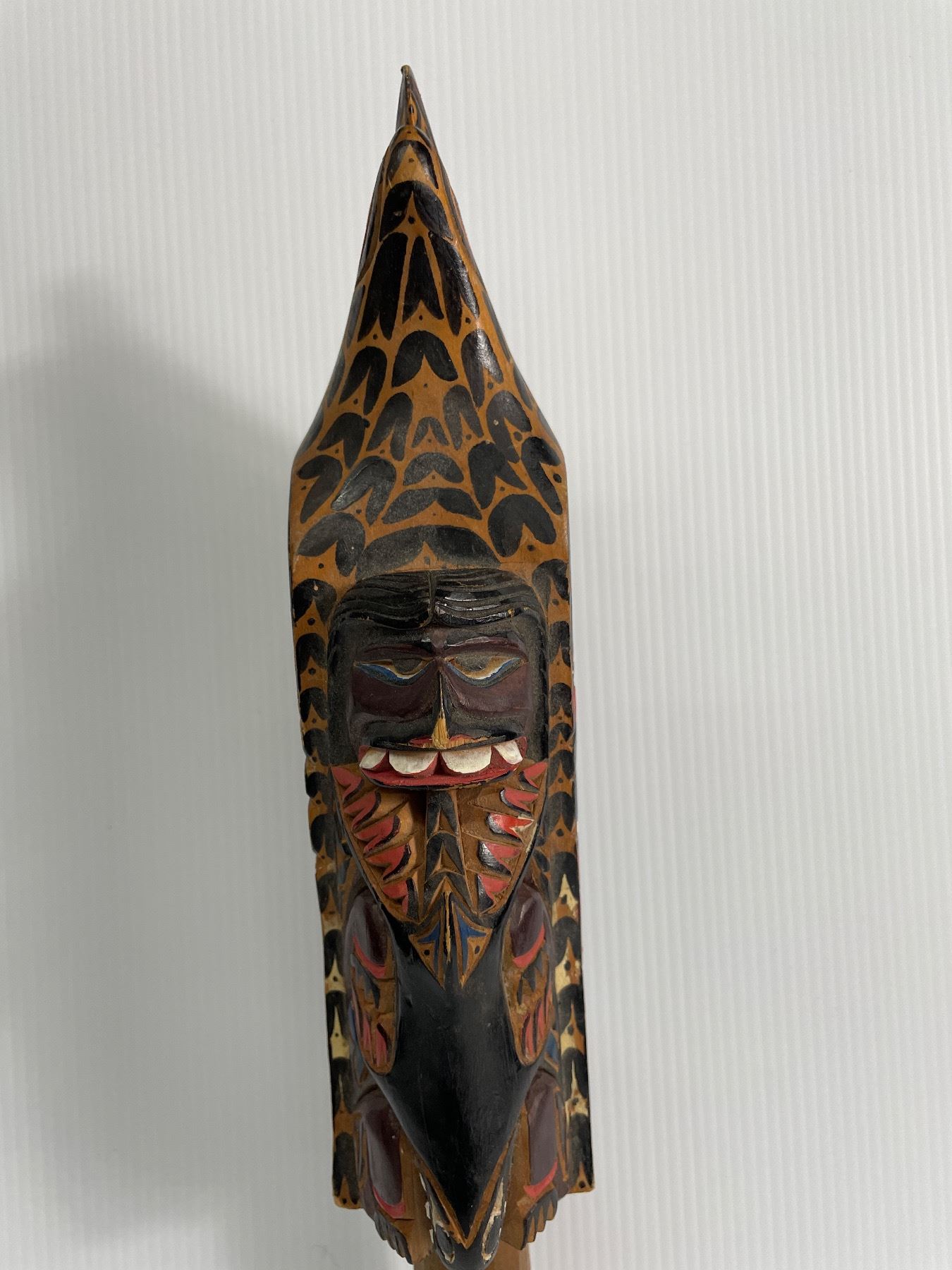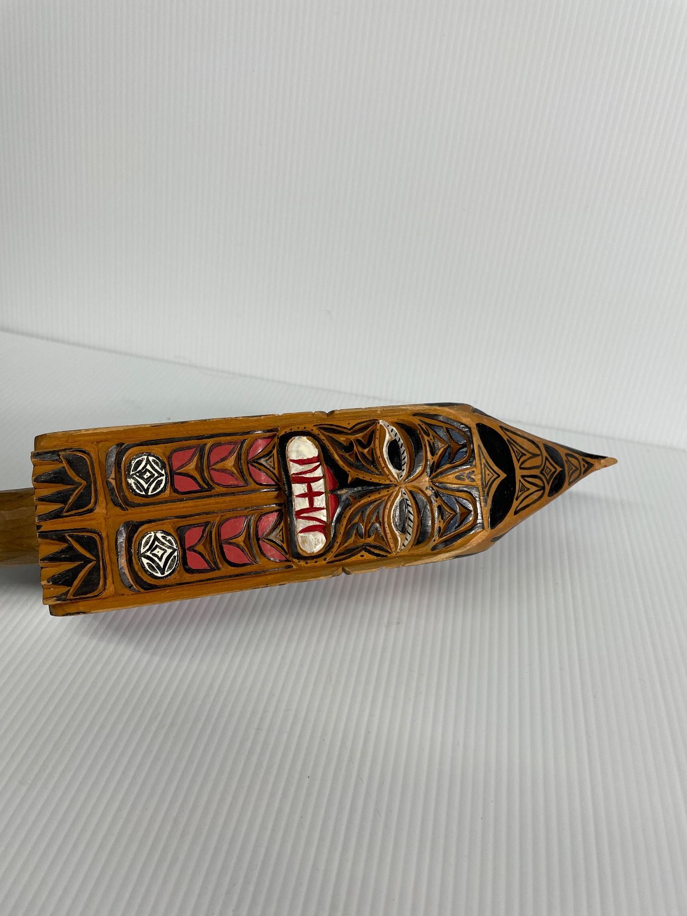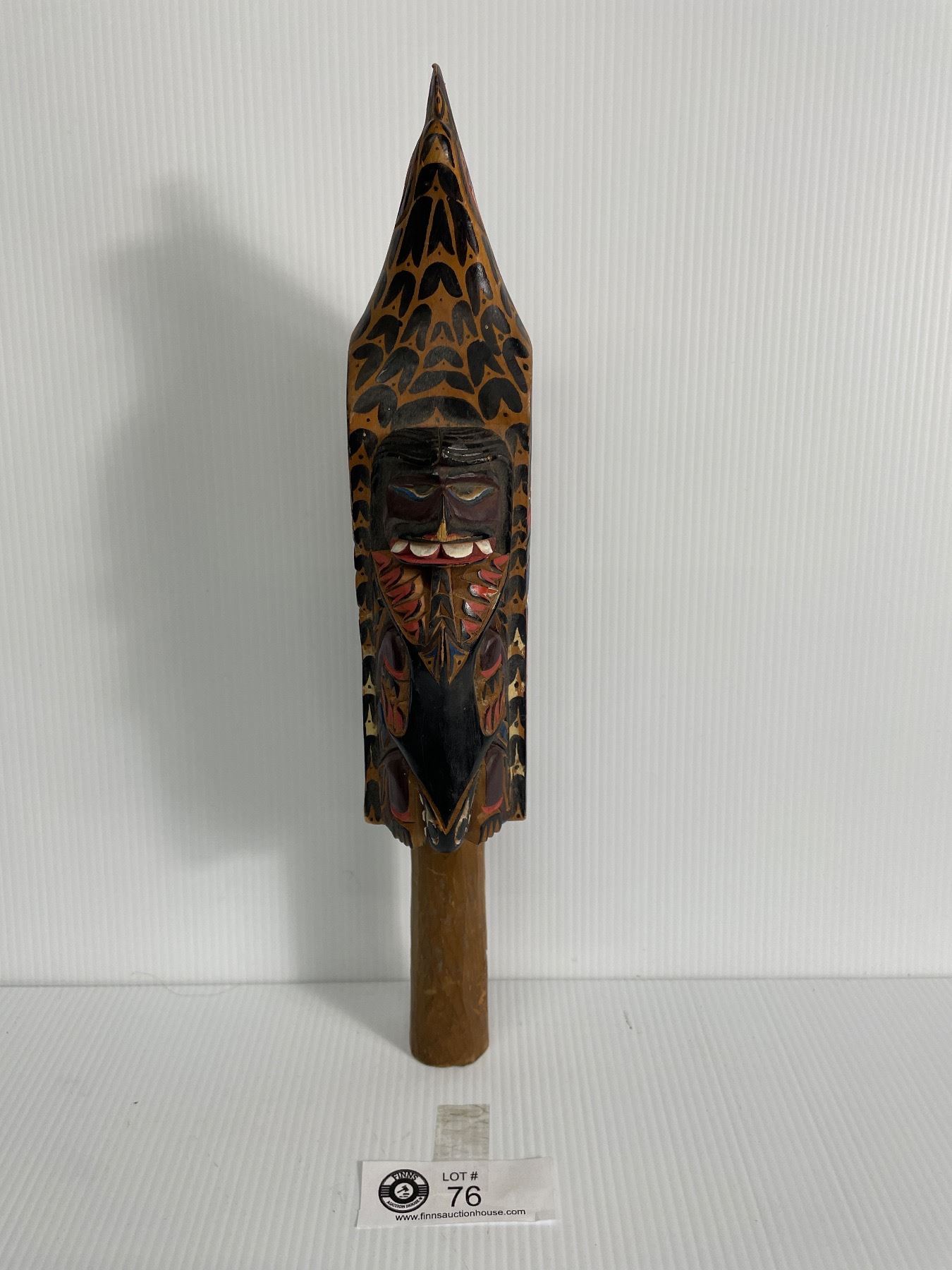 Nicely Carved & Painted Aboriginal Wood Rattle Signed "John Wila's, Vancouver BC 1979 Age 19"