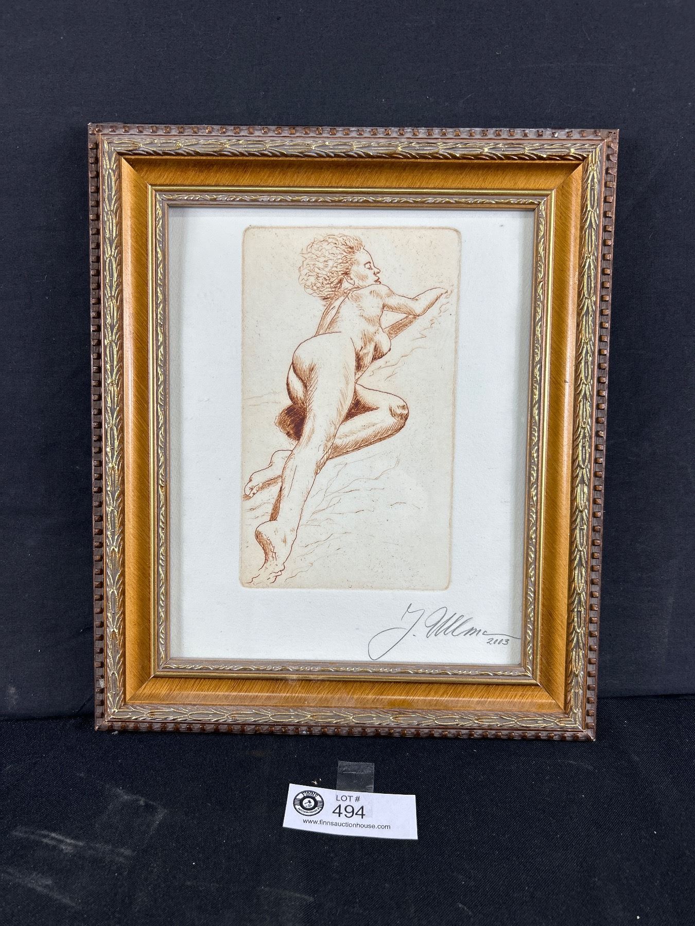 Nicely Framed & Signed 2003 Nude Woman Portrait. Approx. 13" x 11"