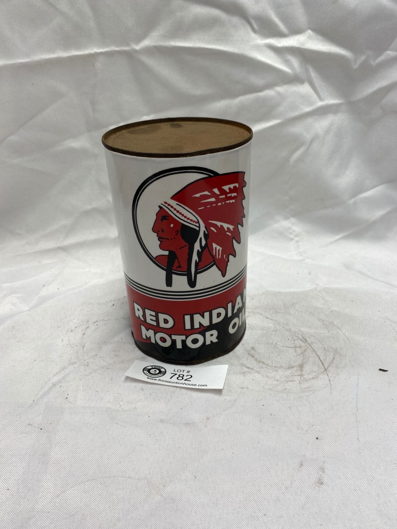 Nicely Re Wrapped Red Indian Motor Oil Tin Full