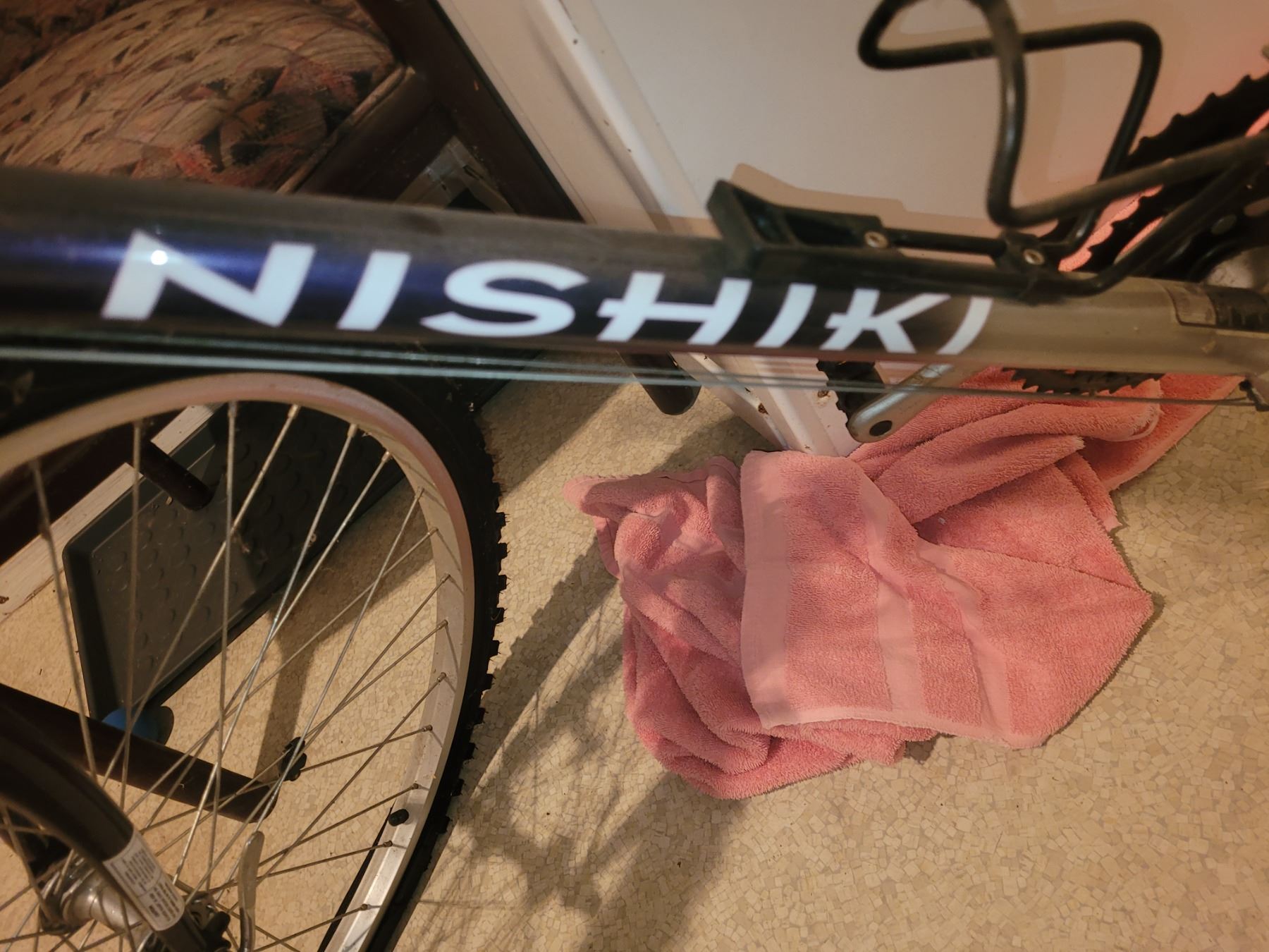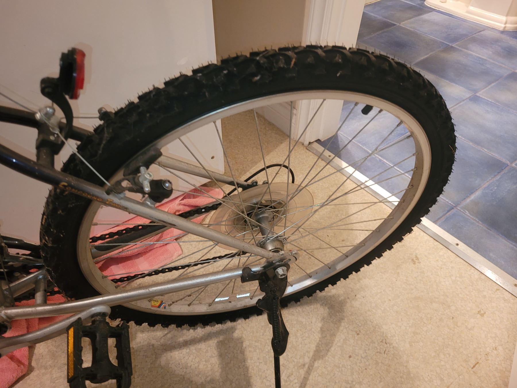 Nishiki Navajo 17" bike helmet. Note tires are flat. Pickup at 10 am
