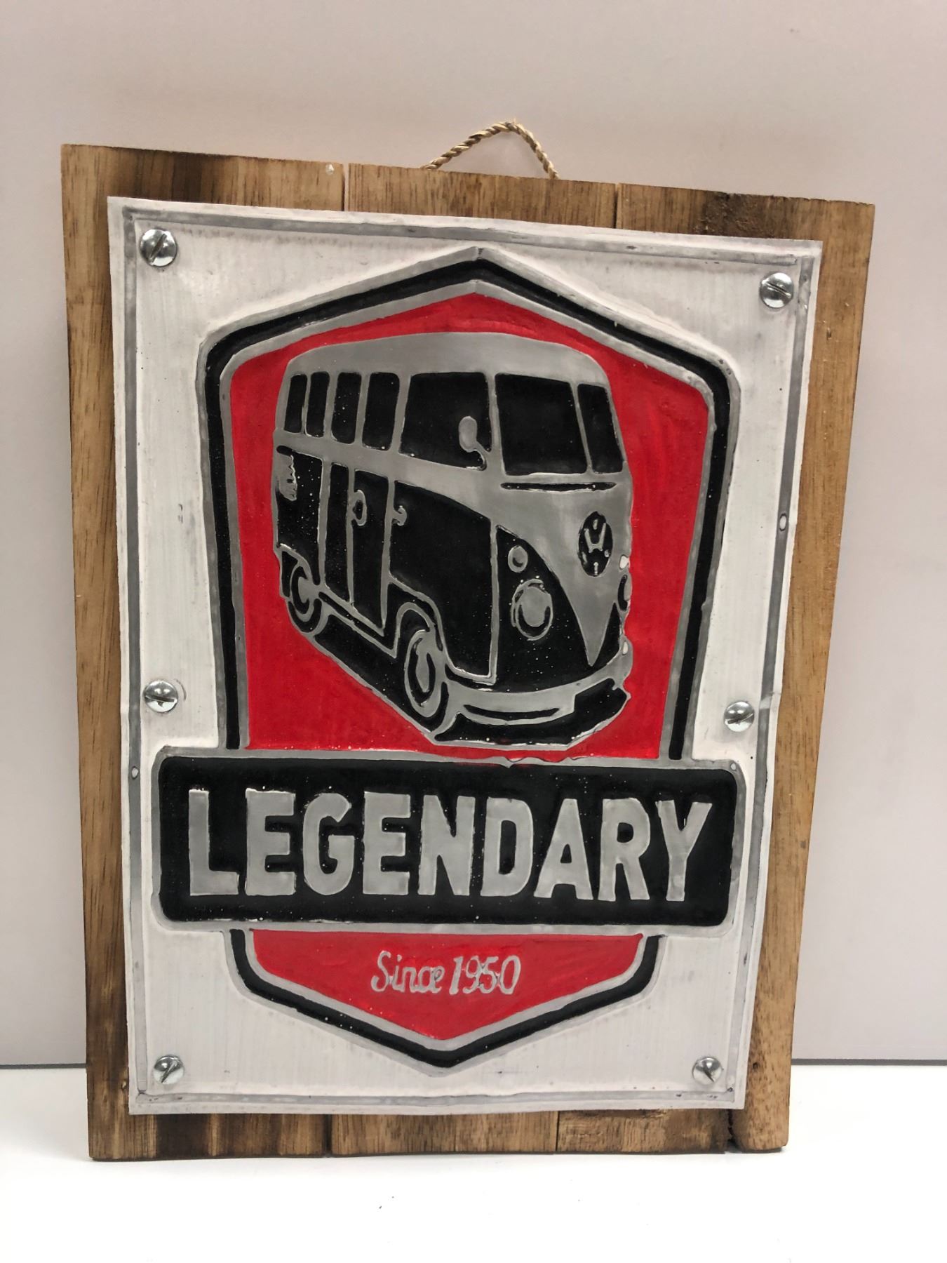 Nostalgic Volkswagen Legendary Van metal on wood sign - 11 3/4 x 15 3/4