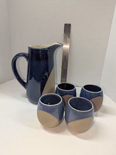 Nugu Pitcher and tea mugs (4) #31 blue/tan