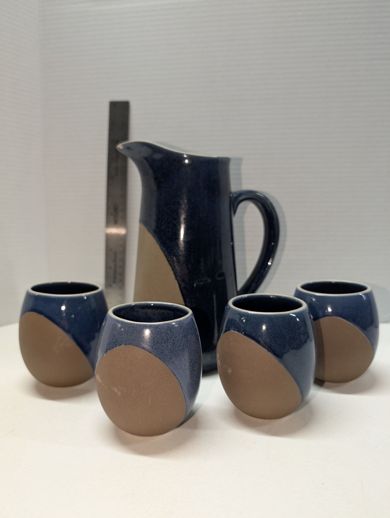 Nugu Pitcher and tea mugs (4) #31 blue/tan