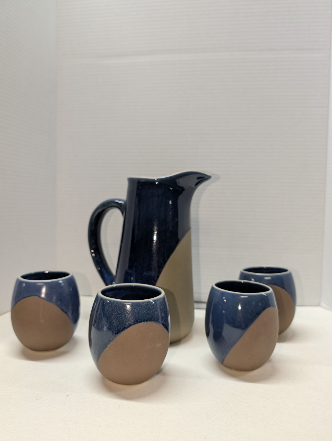 Nugu Pitcher and tea mugs (4) #31 blue/tan