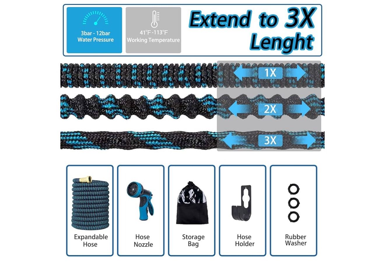 Nupair 75 ft. expandable garden hose w/ nozzle - Expands to 3x the size