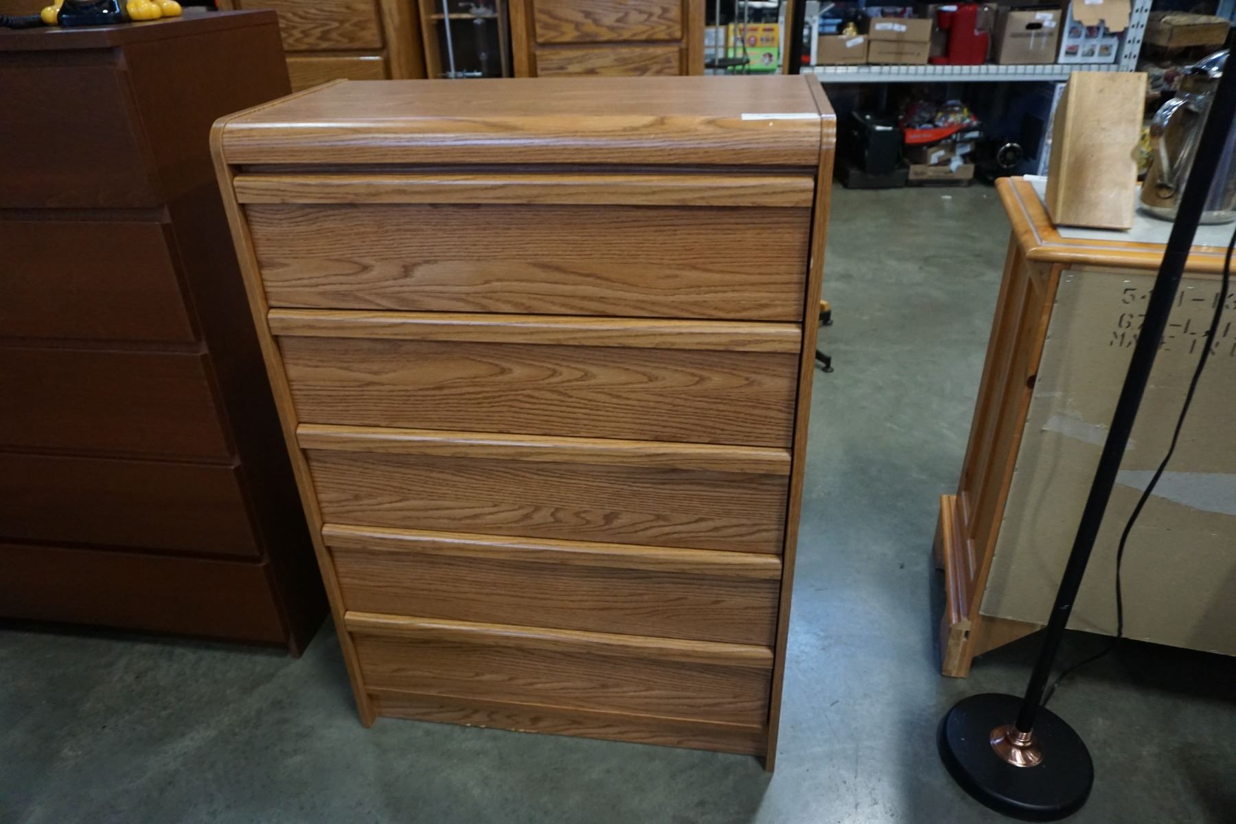 OAK 5 DRAWER CHEST OF DRAWERS