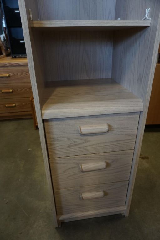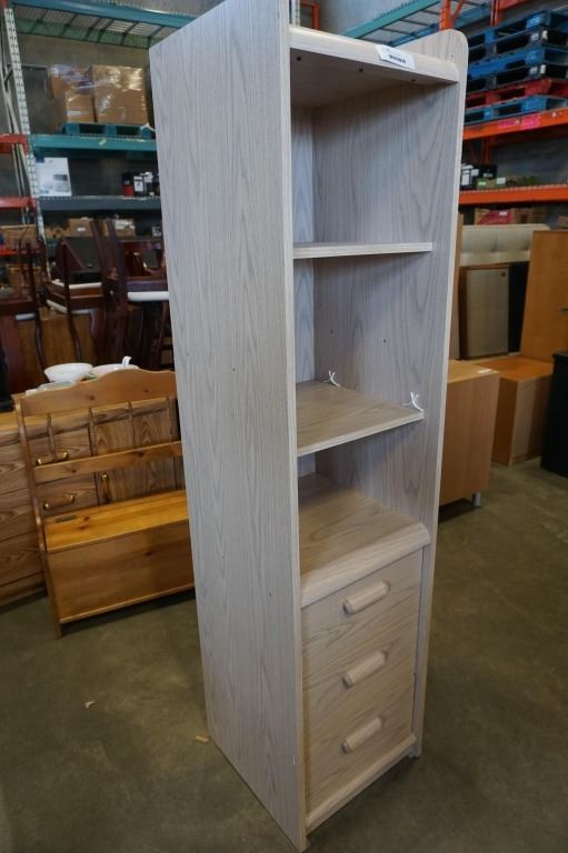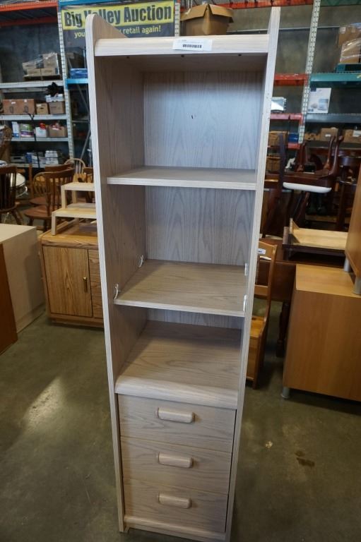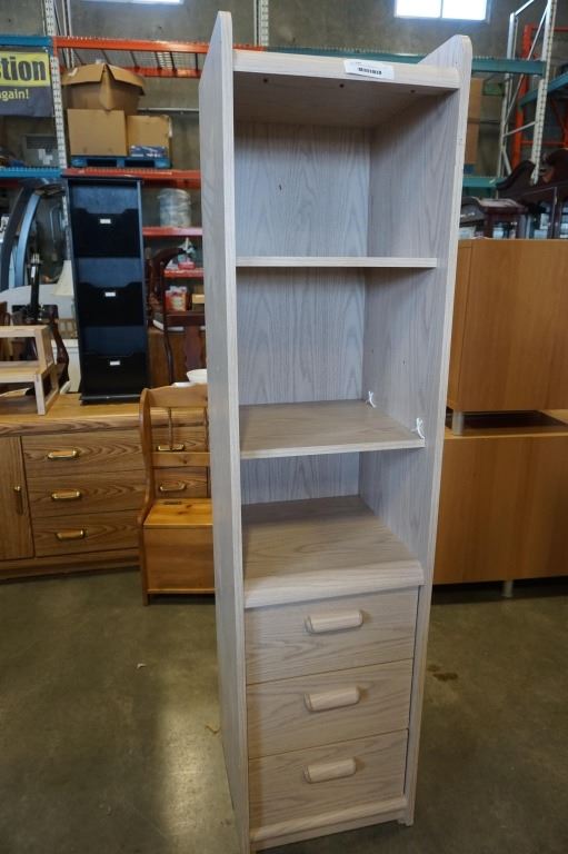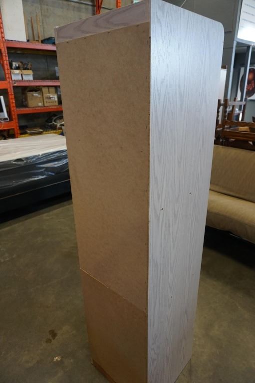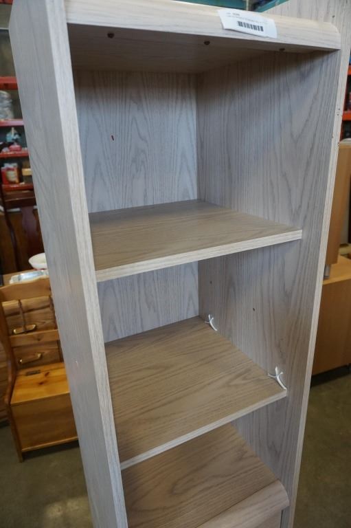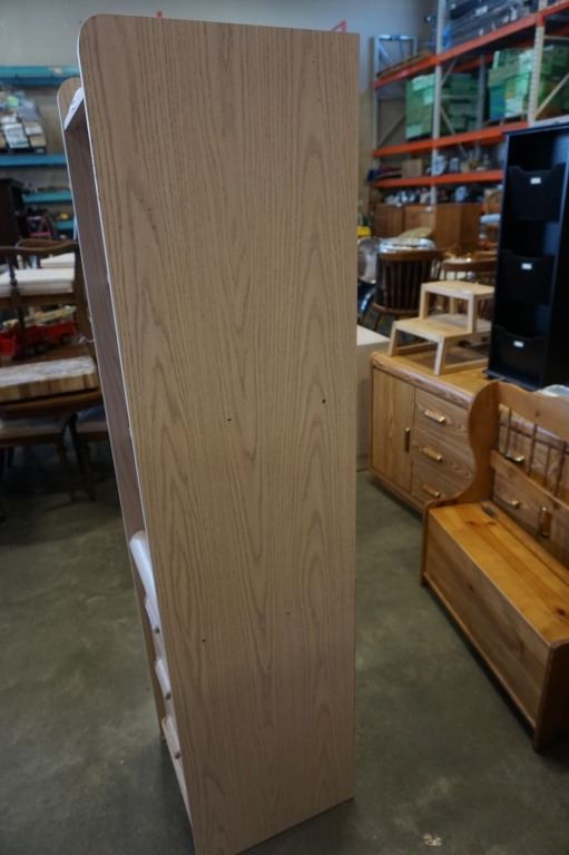 OAK BOOKSHELF 70 INCHES TALL X 17 1/2 INCHES WIDE X 17 1/2 INCHES DEEP