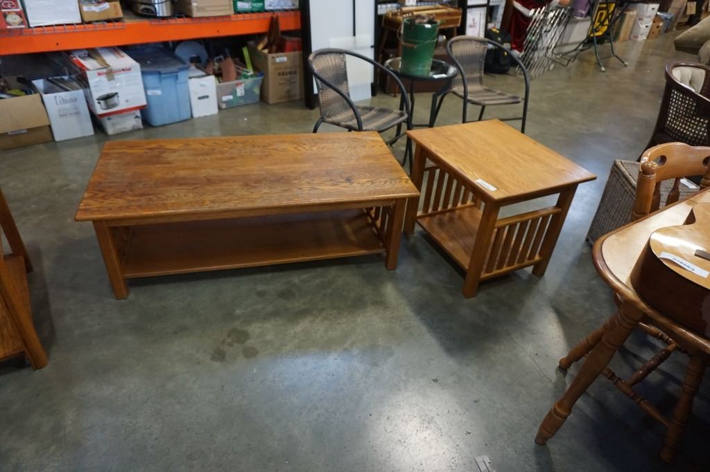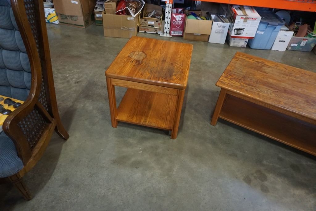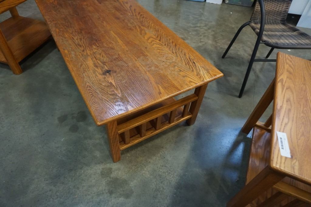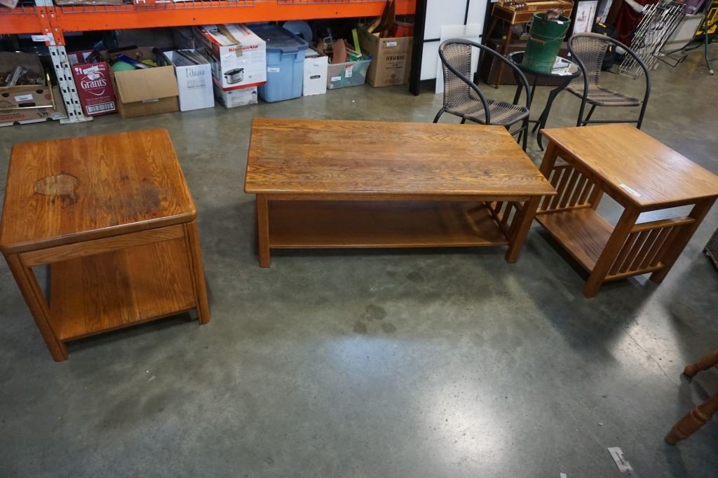 OAK COFFEE TABLE AND 2 ENDTABLES