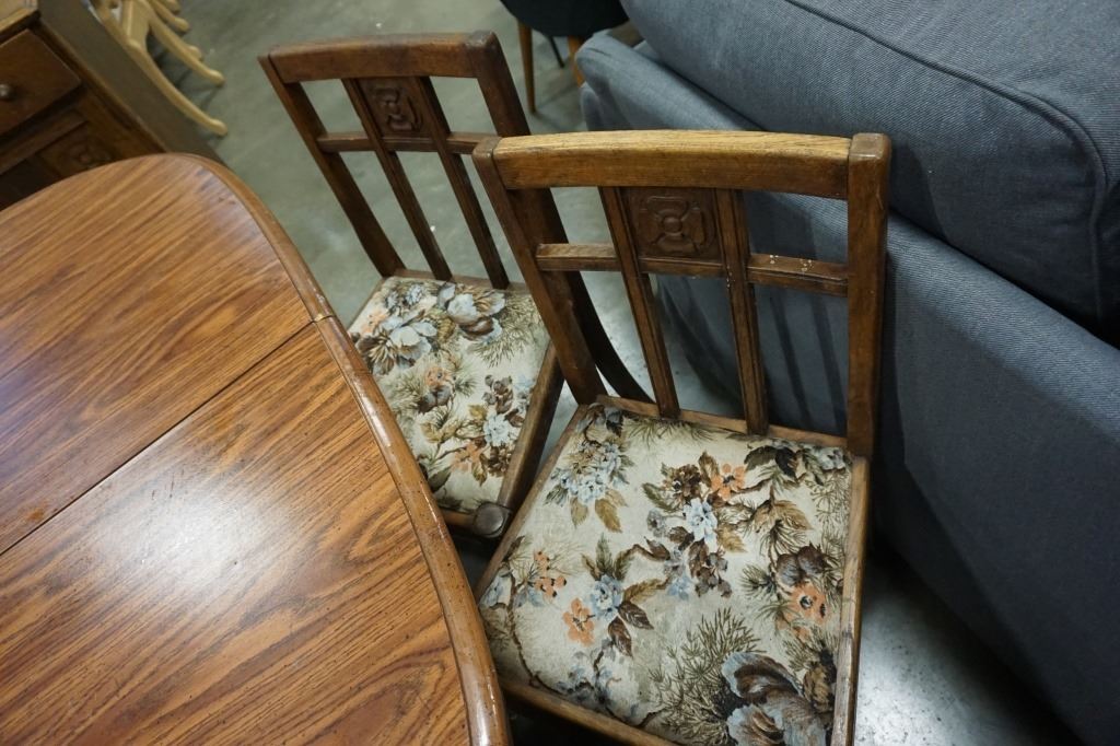 OAK DINING TABLE WITH 4 CARVED WOOD CHAIRS