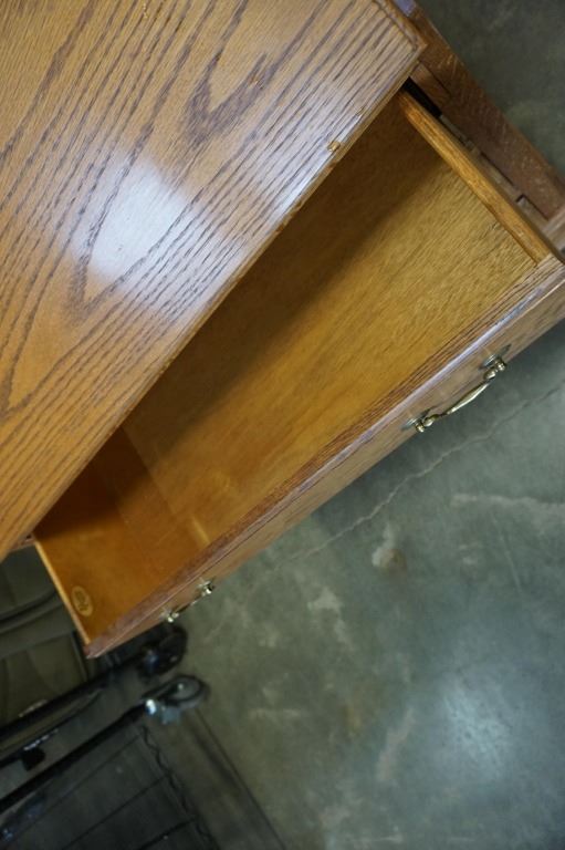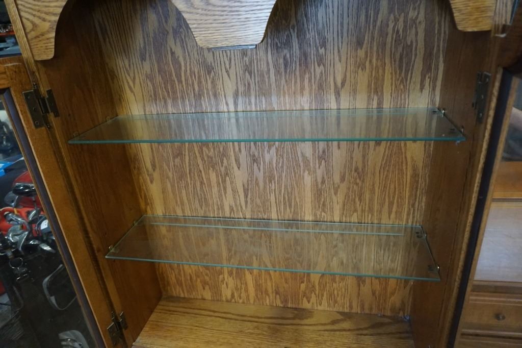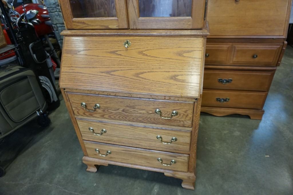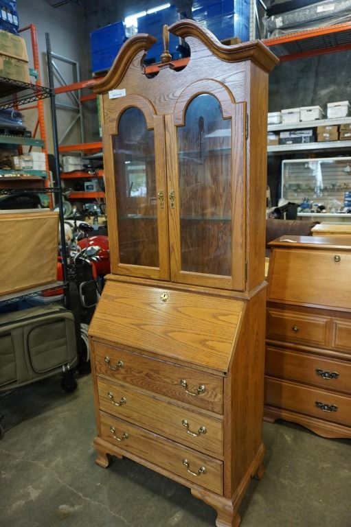 OAK DROPFRONT DESK GLASS DOOR DISPLAY CABINET