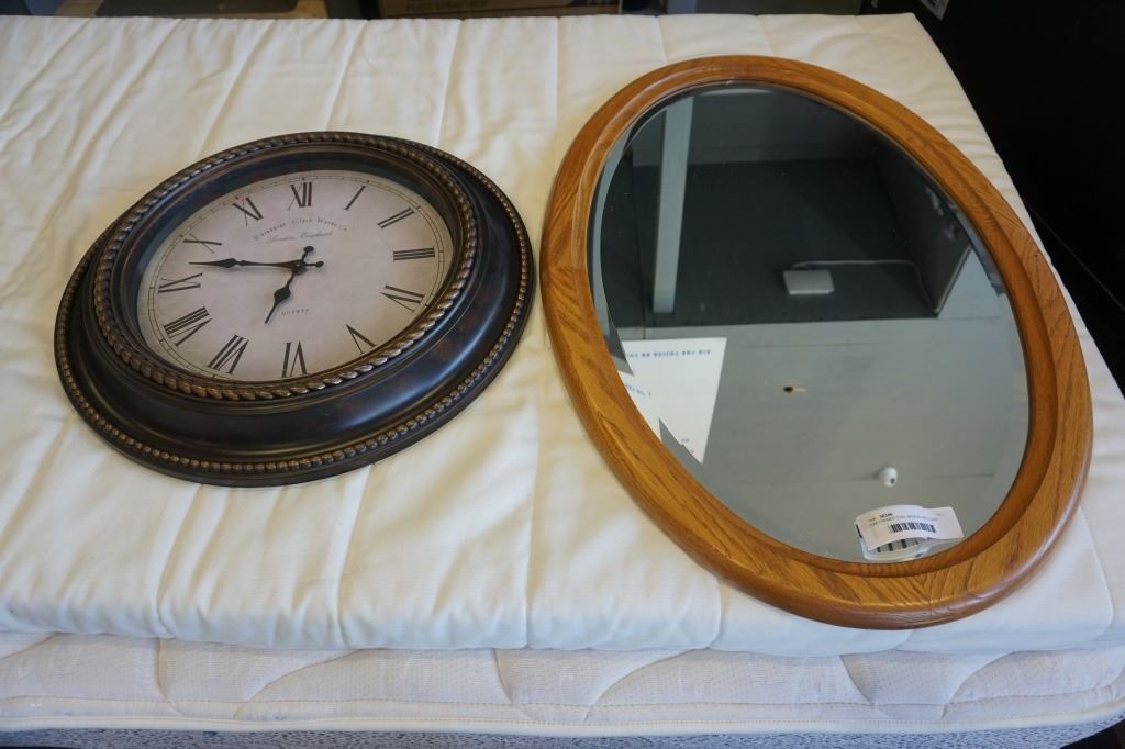 OAK FRAMED OVAL MIRROR AND CLOCK
