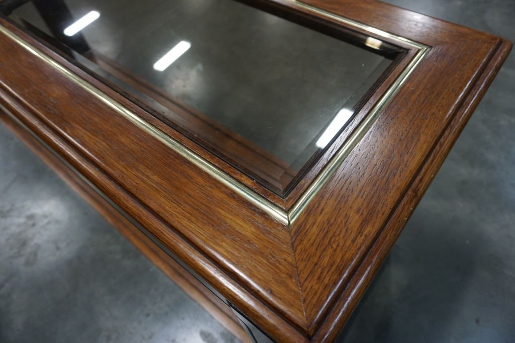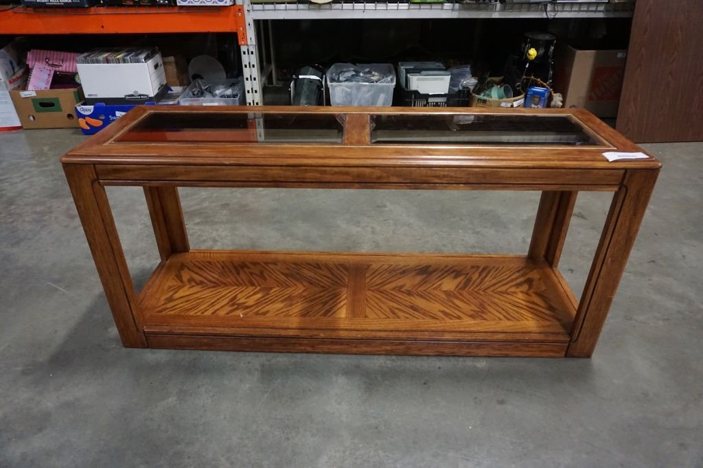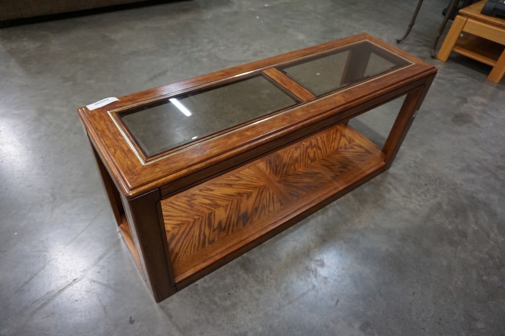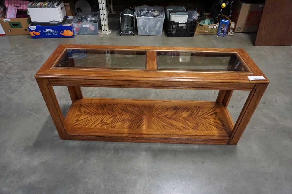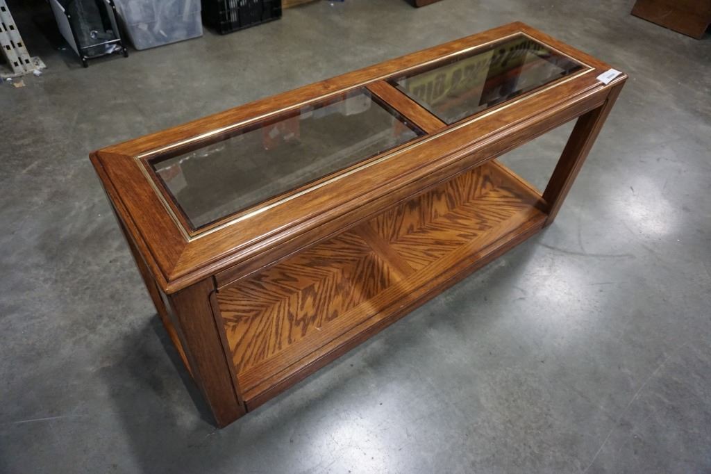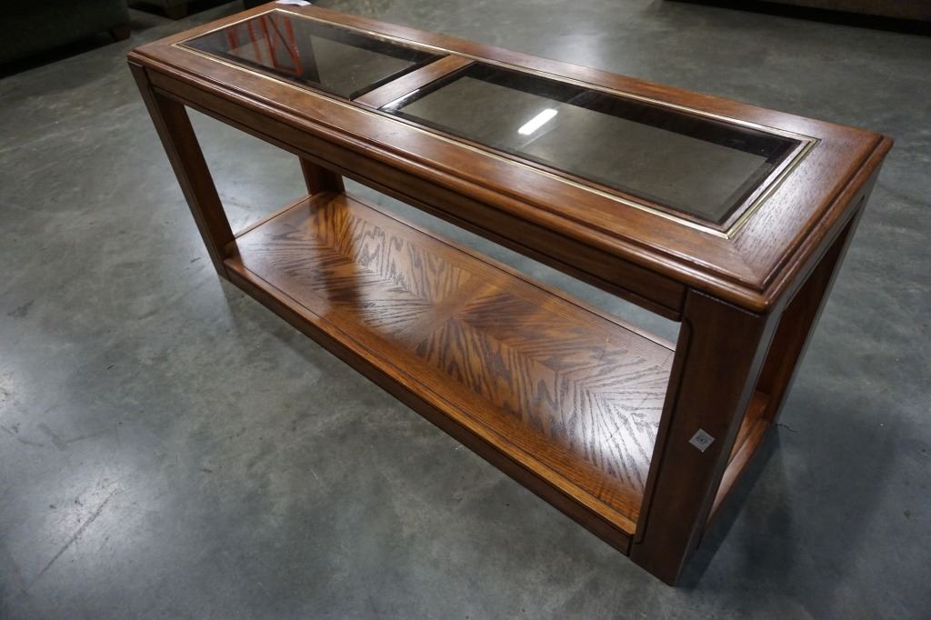 OAK GLASSTOP SOFA TABLE
