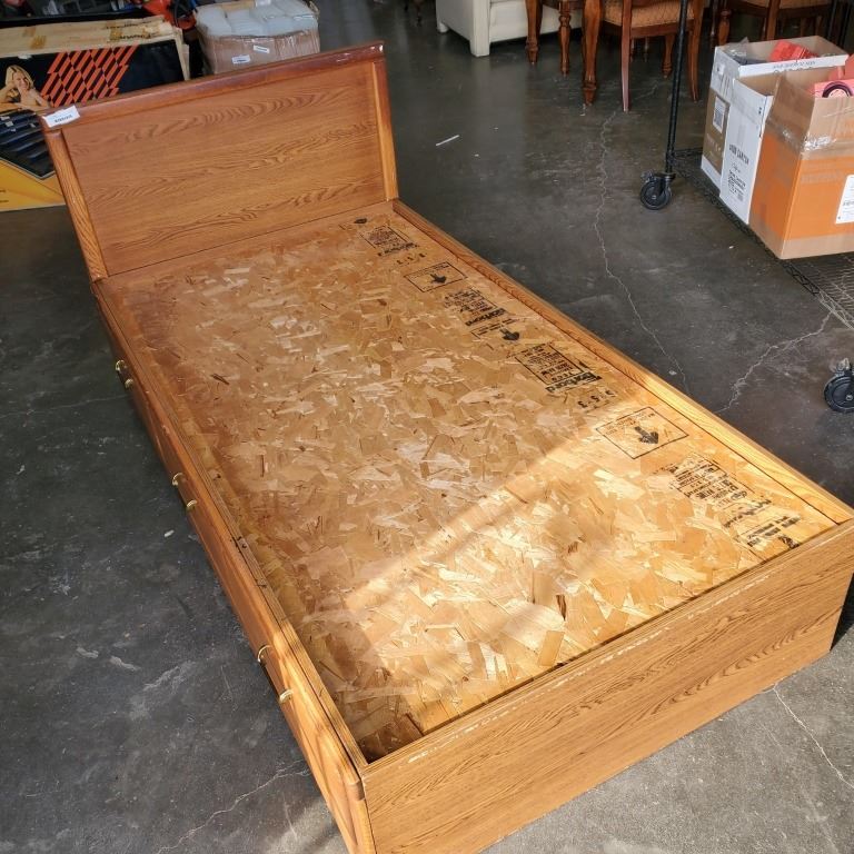 OAK SINGLE SIZE BEDFRAME W/ STORAGE DRAWERS