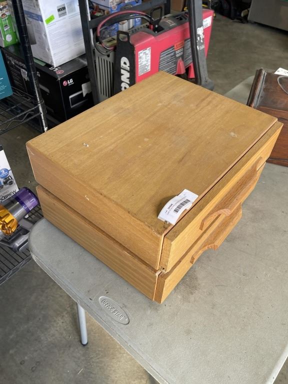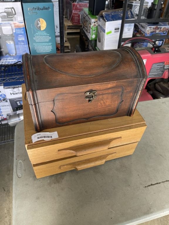 OAK STACKING DRAWERS AND WOODEN DECORATIVE BOX