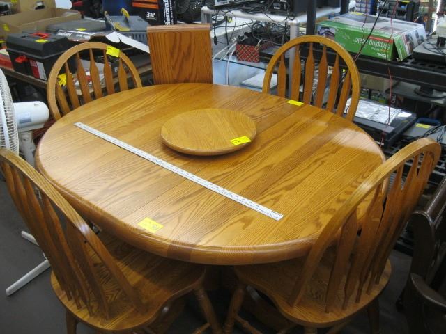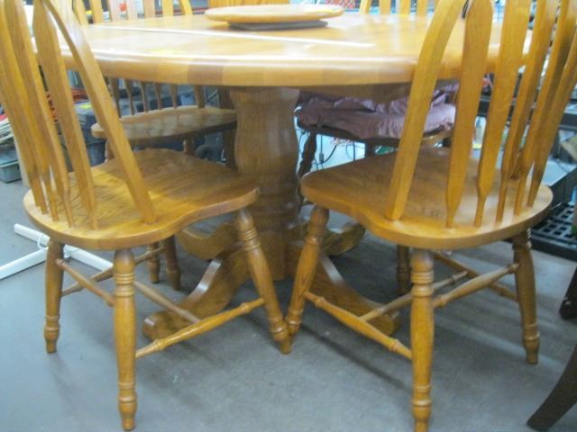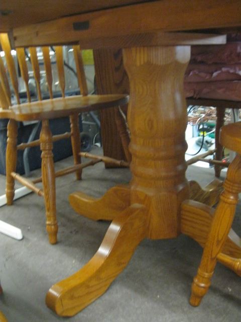 OAK TABLE WITH 2 LEAVES & 4 CHAIRS