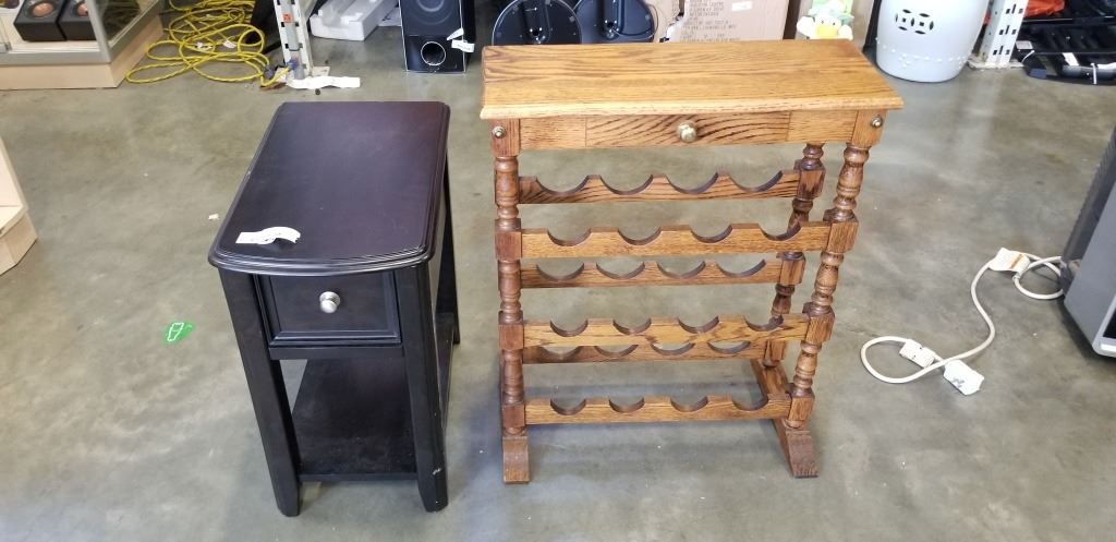 OAK WINE RACK AND ONE DRAWER SIDE TABLE