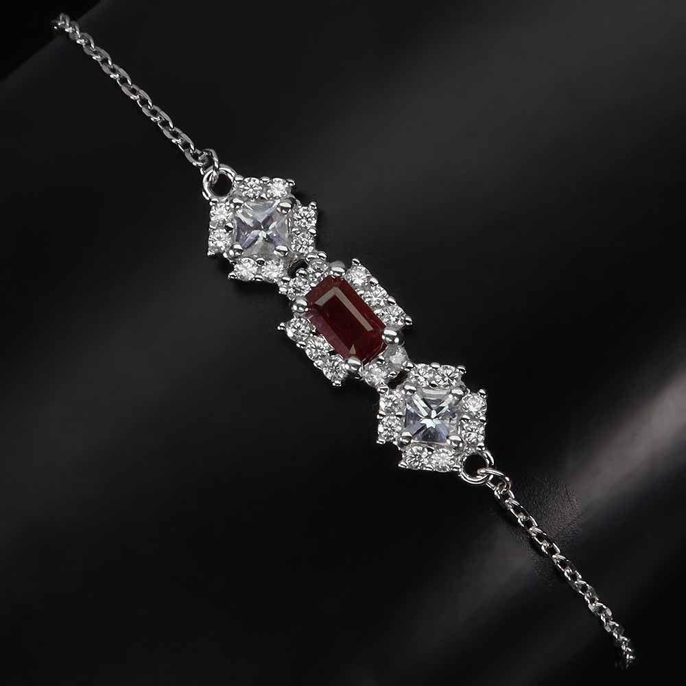 OCTAGON CUT RUBY BRACELET IN 14K WHITE PLATED GOLD OVER 925 STERLING SILVER - 7 INCHES LONG - APPRAISED REPLACEMENT VALUE