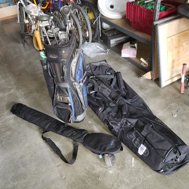OGIO GOLF TRAVEL BAG W/ BAG OF CLUBS AND DRIVER