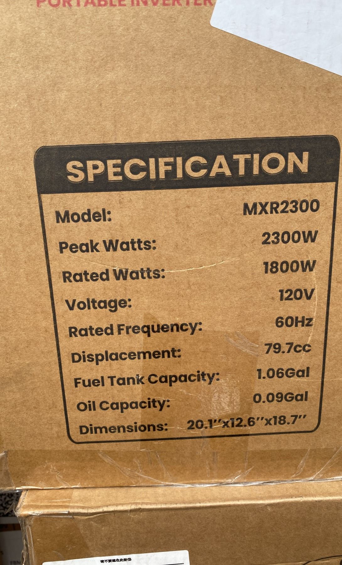 OHV ENGINE ( MXR2300 ) PORTABLE INVERTER GAS POWERED GENERATOR WITH A 1.06 GALLON FUEL CAPACITY *IN BOX*