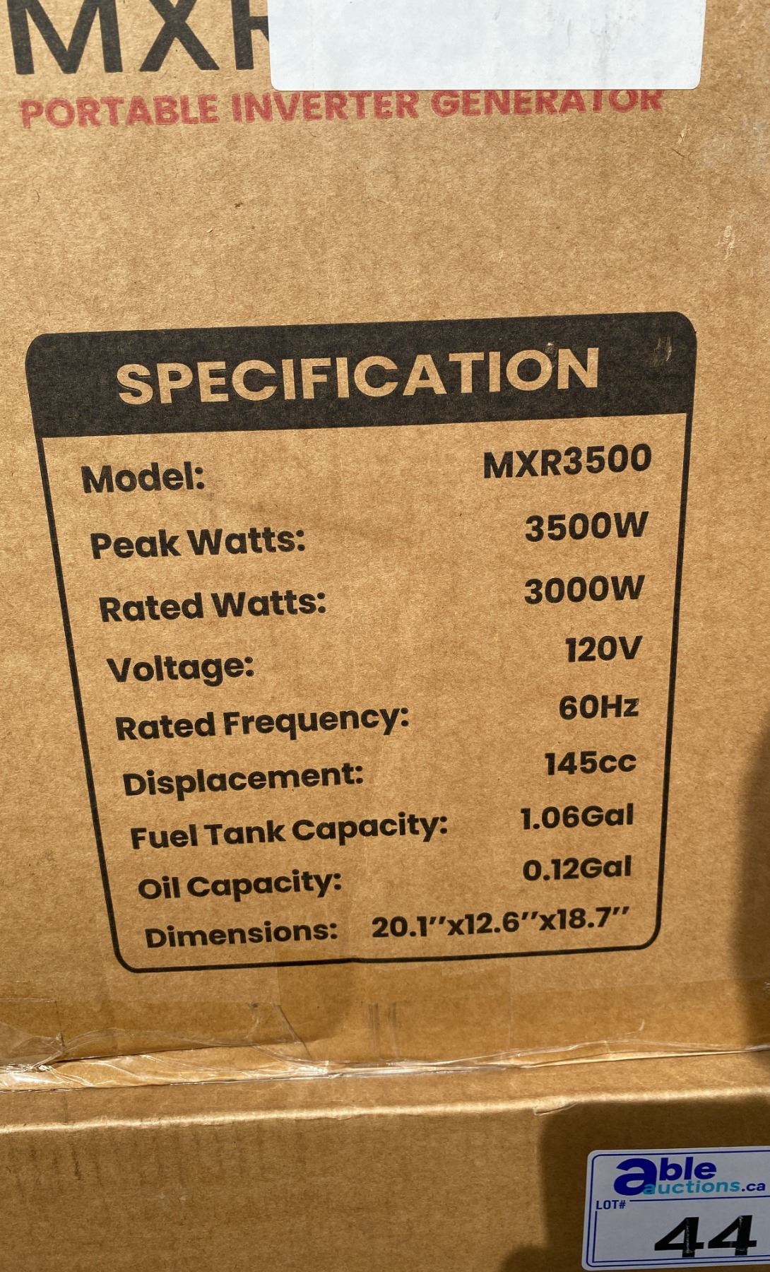 OHV ENGINE ( MXR3500 ) PORTABLE INVERTER GAS POWERED GENERATOR WITH A 1.06 GALLON FUEL CAPACITY *IN BOX*