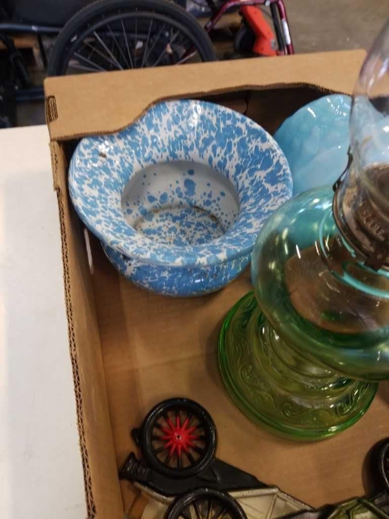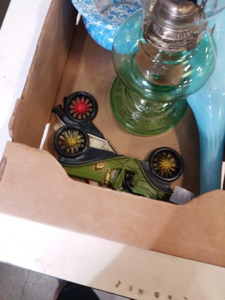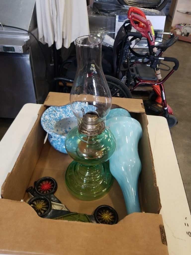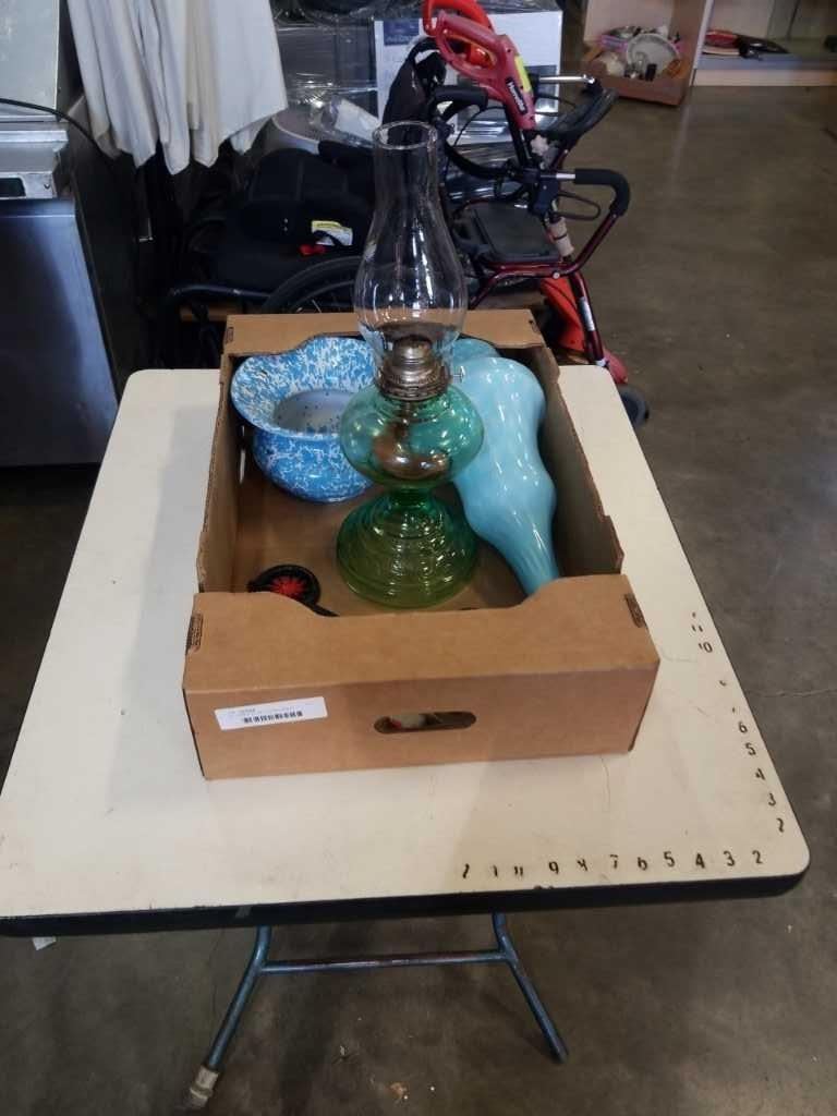 OIL LAMP AND ART GLASS VASES