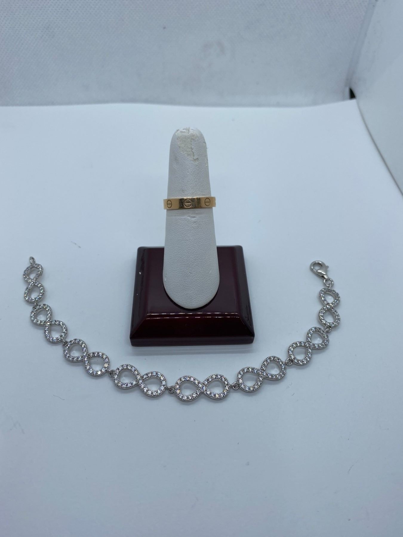 ONE LADIES 18KT ROSE GOLD CARTIER LOVE RING REPLACEMENT VALUE: $ 1,400 ONE STERLING SILVER AND COLOURLESS CUBIC ZIRCONIA BRACELET REPLACEMENT VALUE: $ 200.00