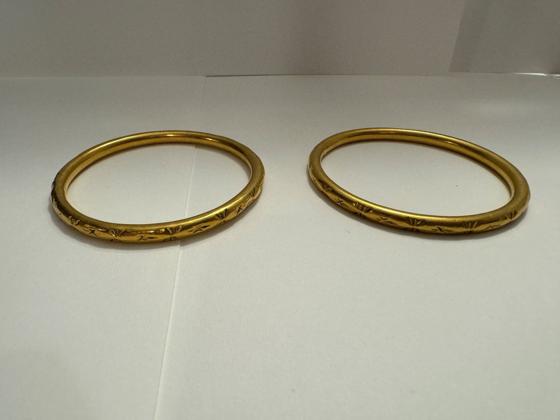 ONE PAIR OF 2 20KT YELLOW GOLD BANGLE STYLE BRACELETS 4.90MM WIDE, 52.7 GRAMS, REPLACEMENT $9,200.00 *APPRAISAL INCLUDED*