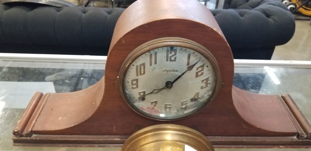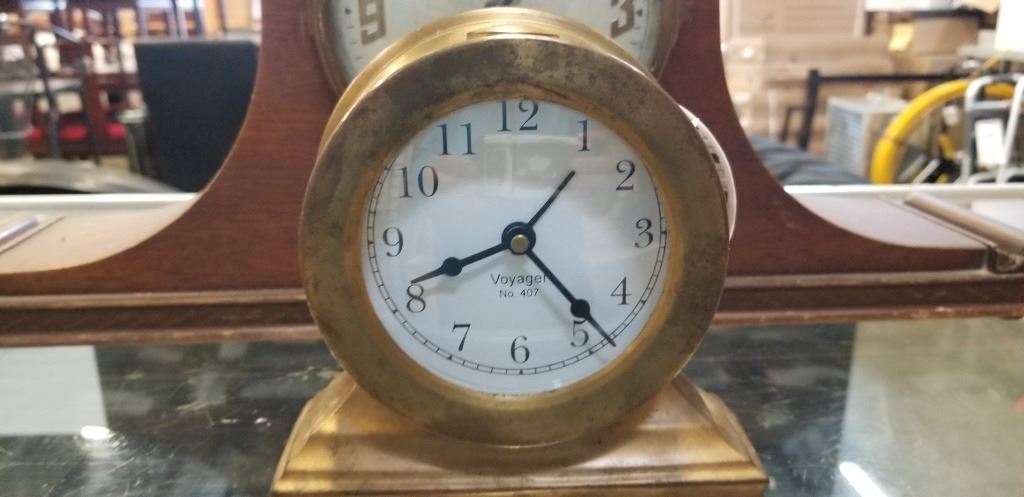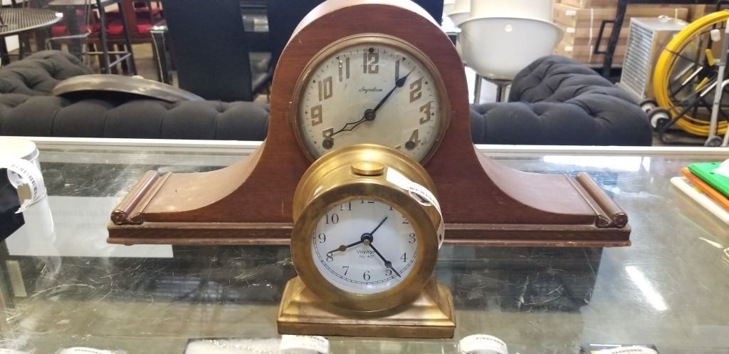 ONE WOOD AND ONE BRASS MANTLE CLOCKS