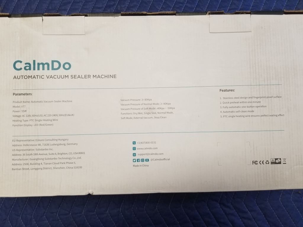 OPEN BOX CALMDO AUTOMATIC VACUUM SEALER MODEL V77