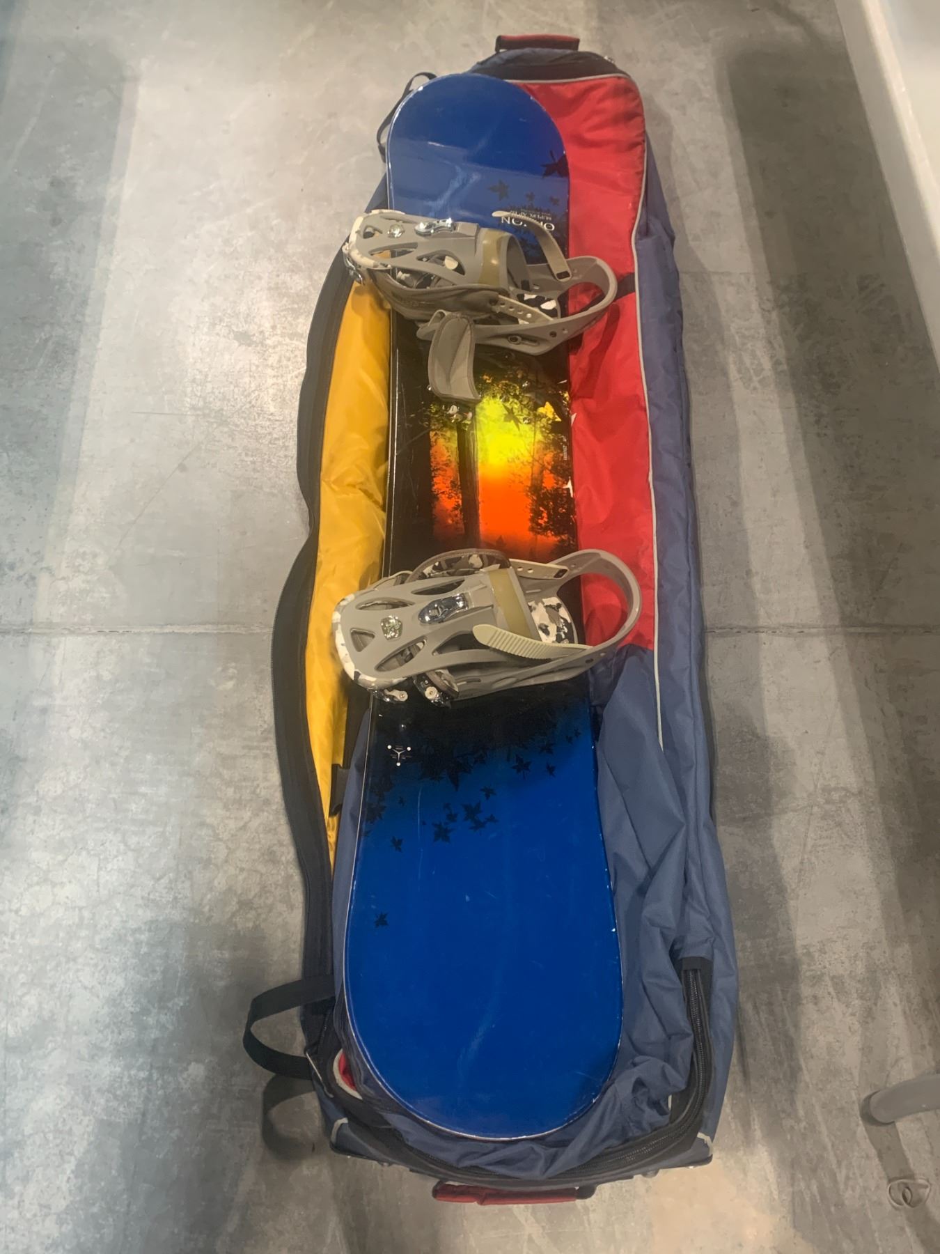 OPTION SUPERCAP 157 SNOWBOARD WITH BUGABOO MOUNTAIN EQUIPMENT SNOWBOARD BAG AND PING ROLLING COVER BAG