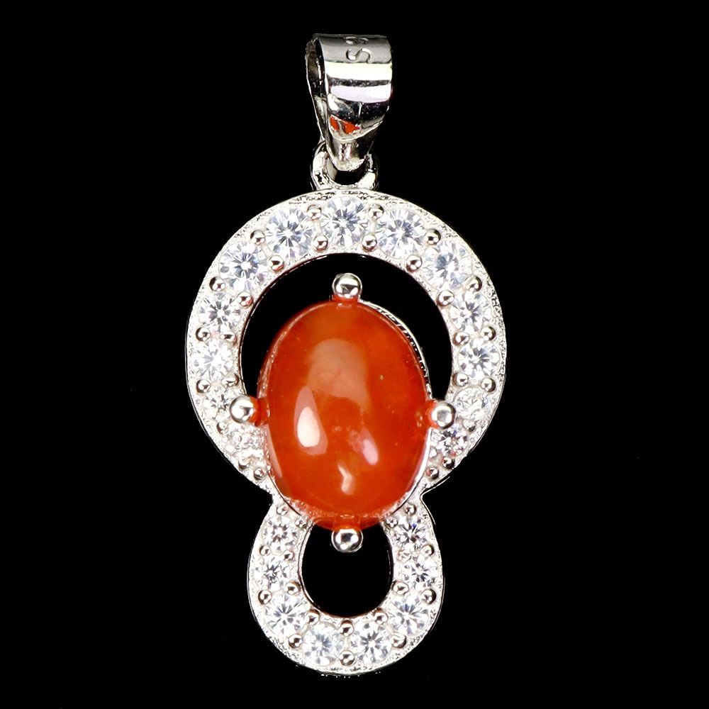 ORANGE FIRE OPAL PENDANT IN 14K WHITE PLATED GOLD OVER 925 STERLING SILVER - APPRAISED REPLACEMENT VALUE