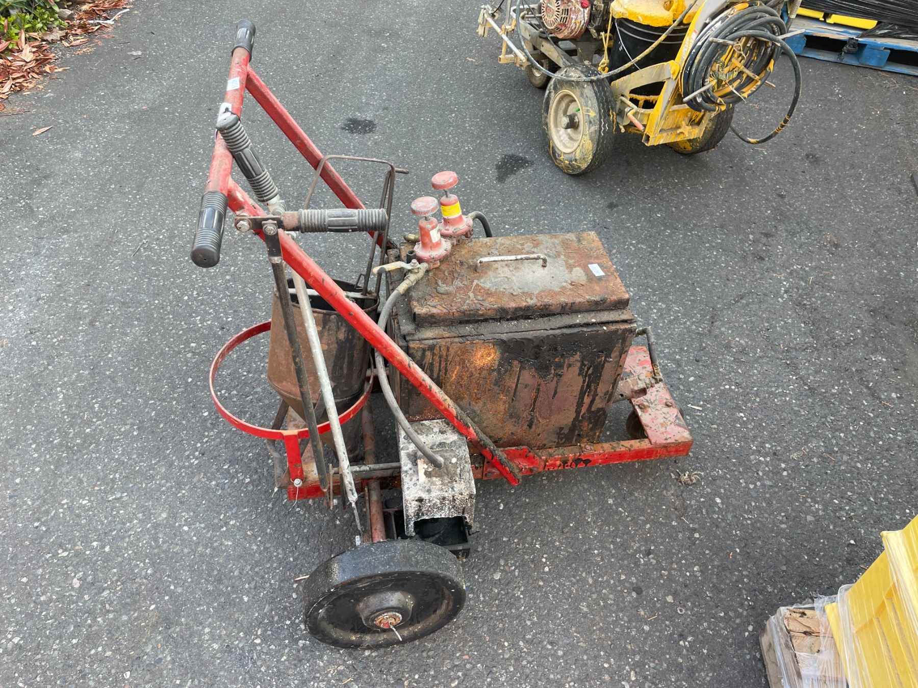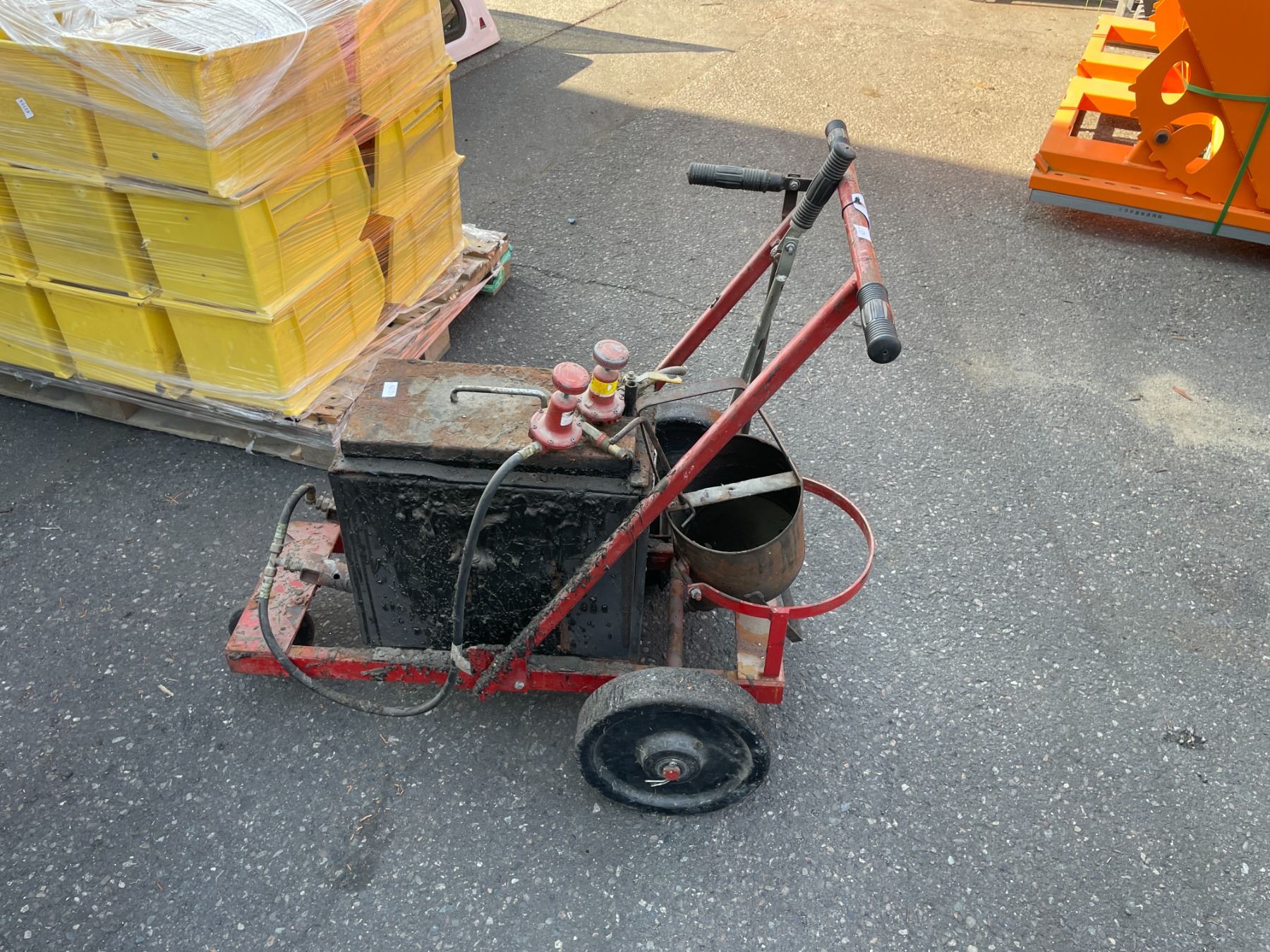 ORANGE INDUSTRIAL WALK BEHIND TAR SPREADING MACHINE