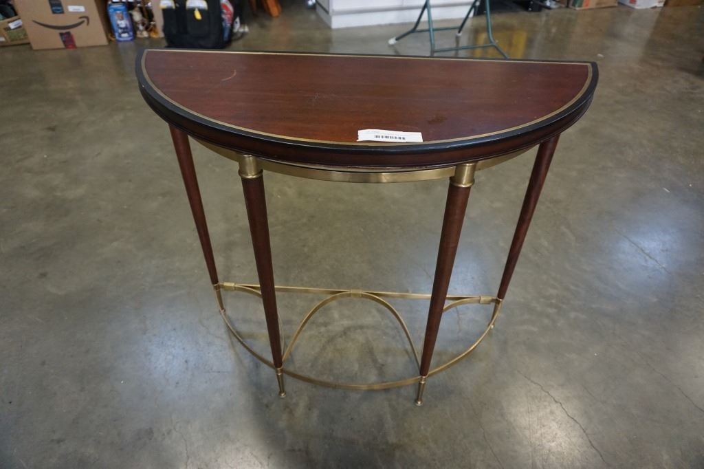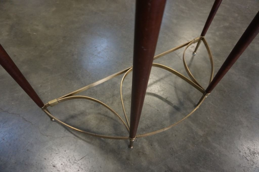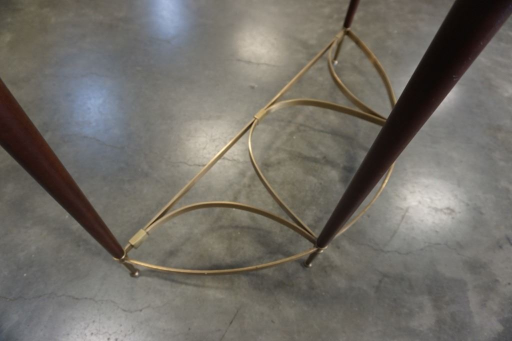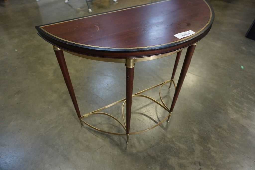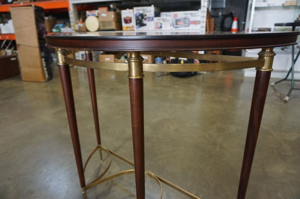 ORIENTAL ACCENT BRASS AND WOOD D TABLE