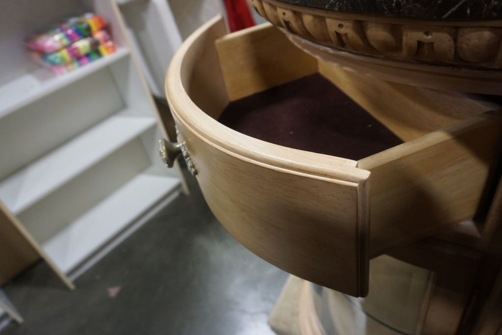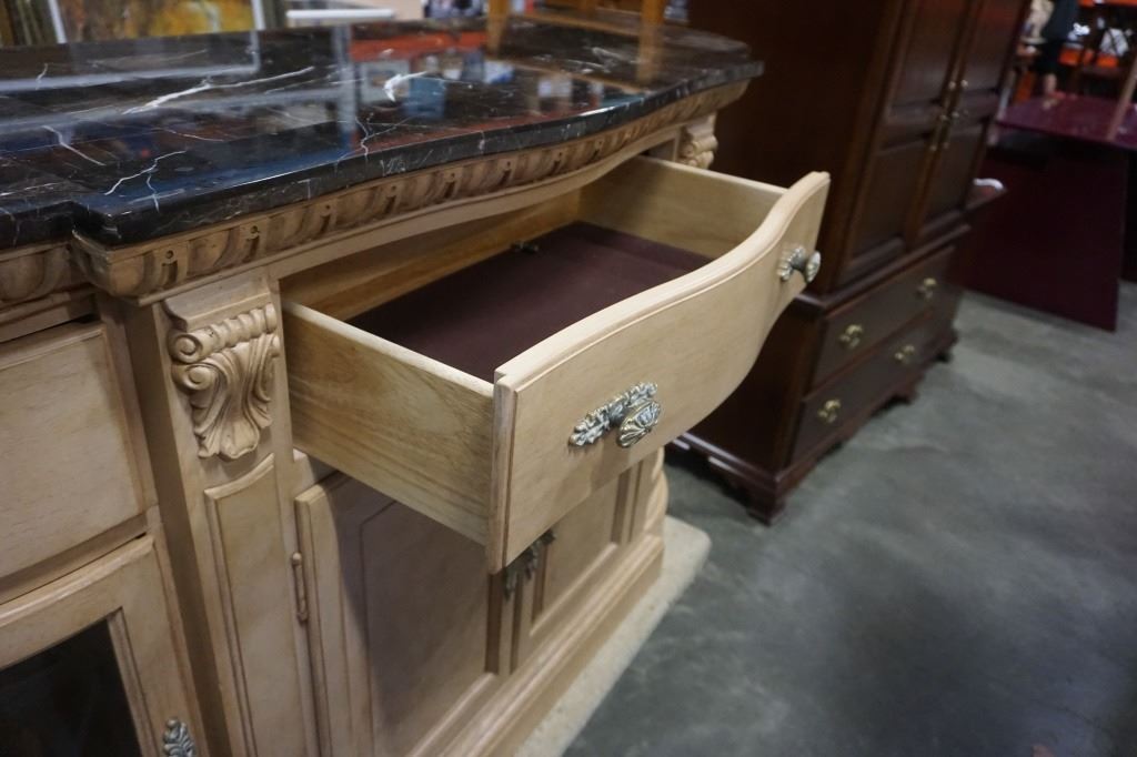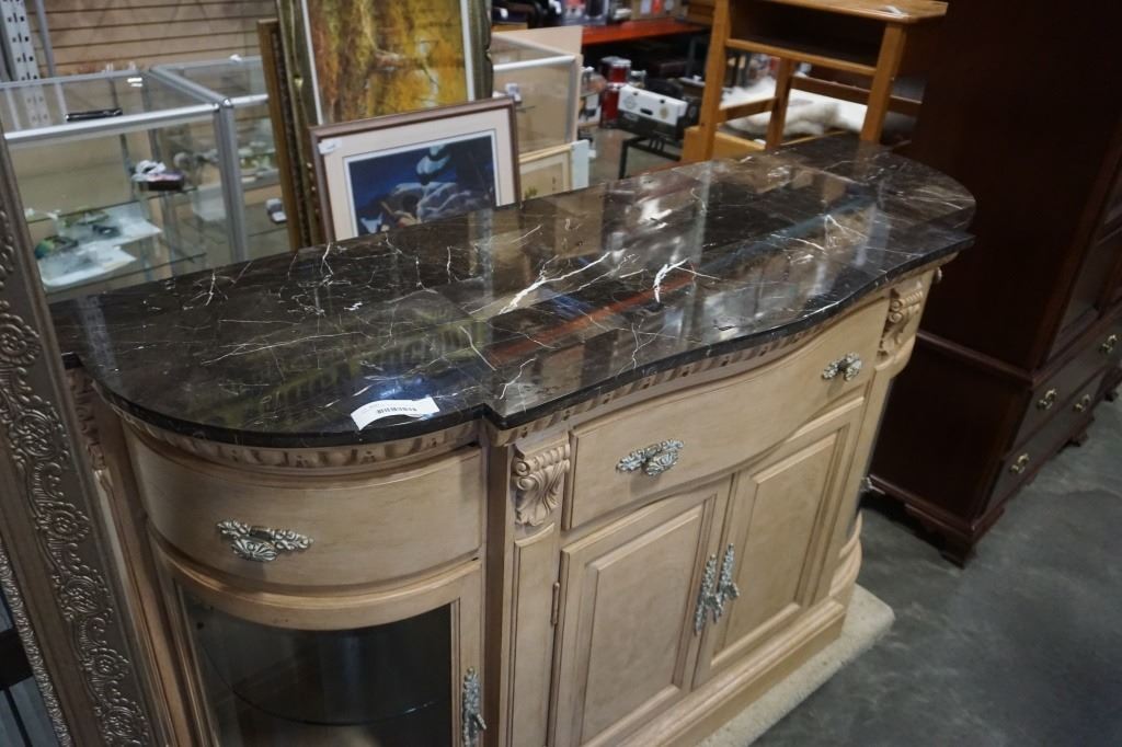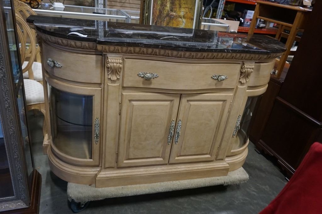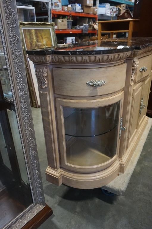 ORNATE BOWED GLASS STONE TOP SERVER