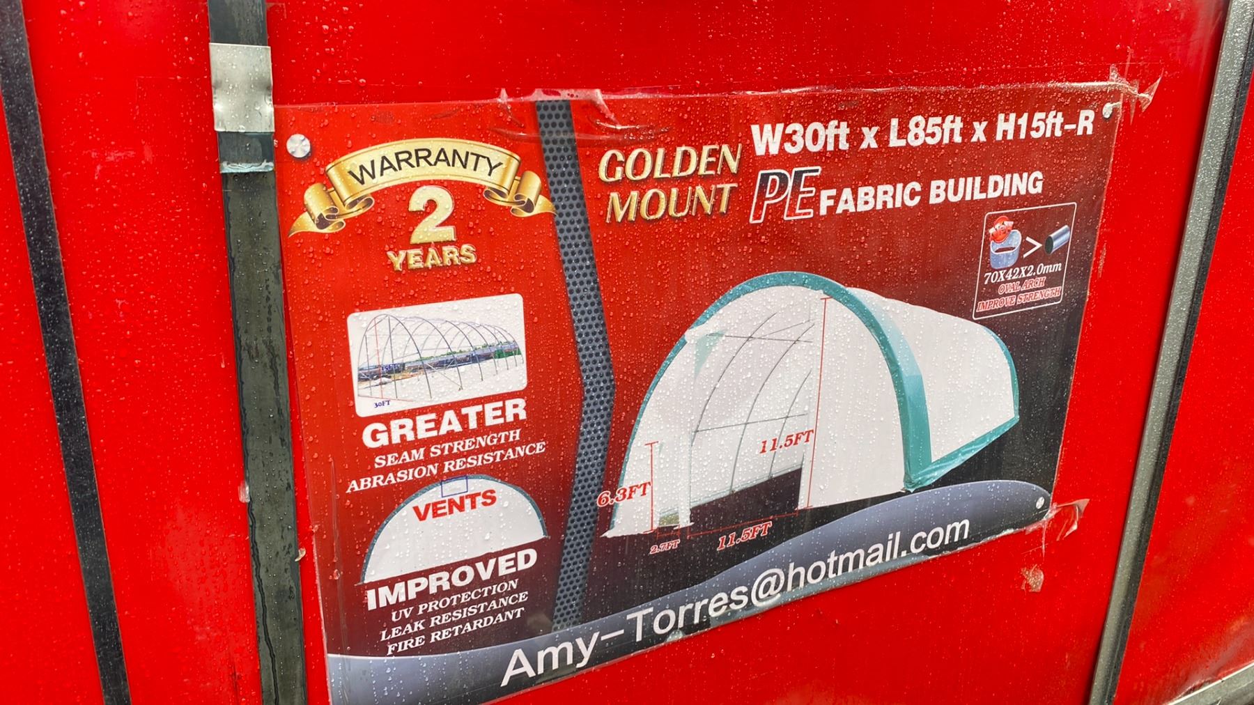 *OS* GOLDEN MOUNT PE FABRIC BUILDING 30'W X 85'L X 15'H WITH VENTS *IMPROVED UV PROTECTION/LEAK RESISTANCE/FIRE RETARDANT*