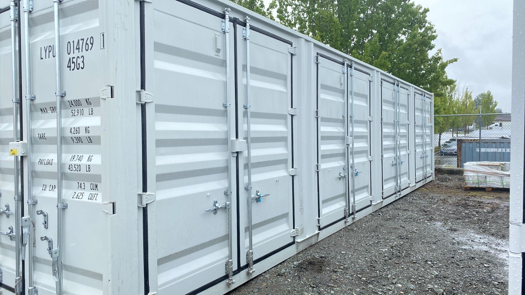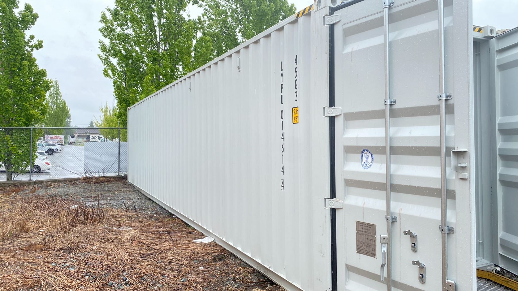 *OS* *H/T* GREY 40FT 52,910 MAX CAPACITY INDUSTRIAL TRANSPORT CONTAINER, 4 SIDE SWING DOORS, DUAL SWING REAR DOOR WITH CAM LOCKS 40'L X 96"W X 114"H LYPU 013557 7 **REQUIRES HIAB CRANE OR TILT DECK TRAILER TO TRANSPORT**