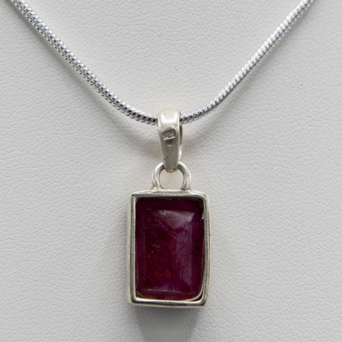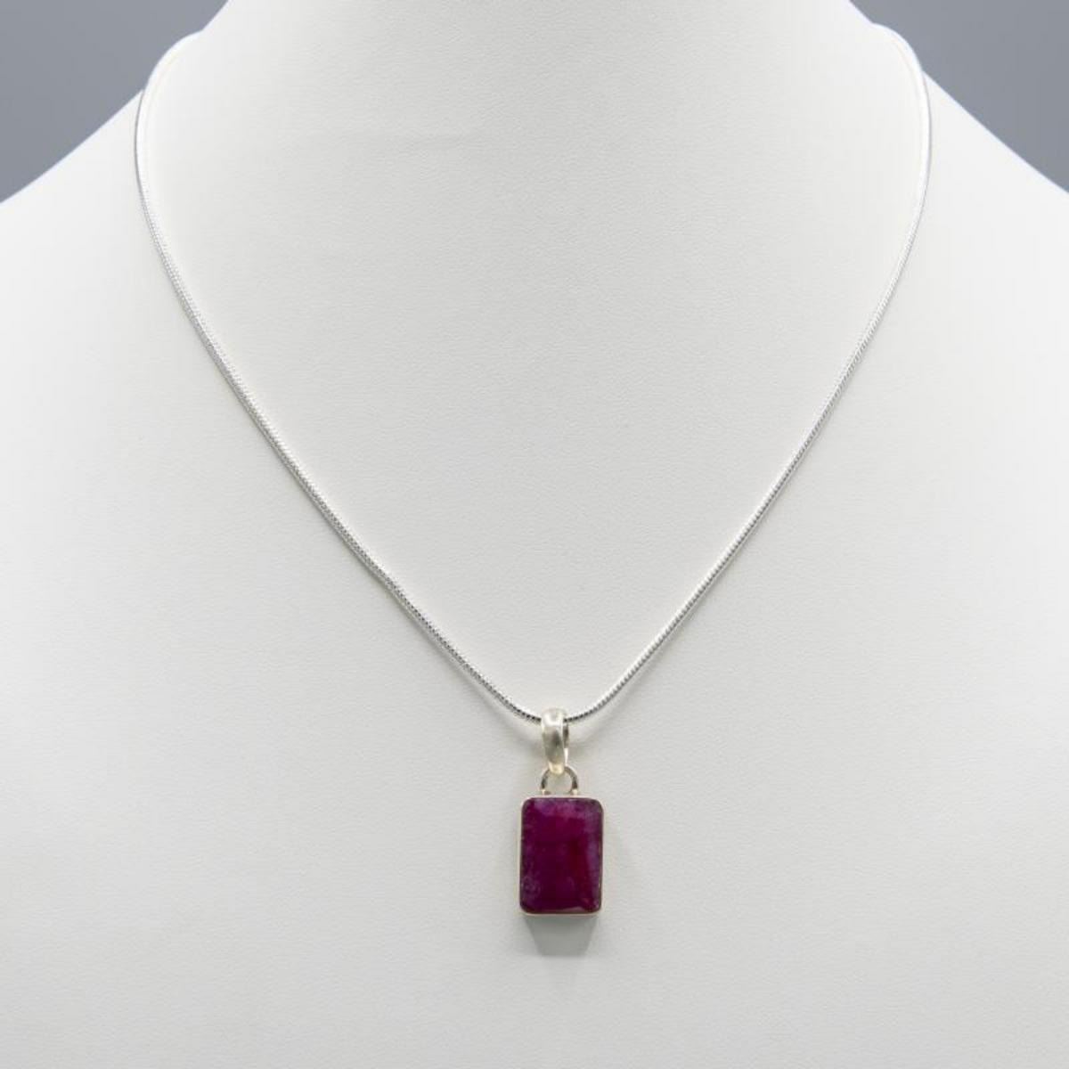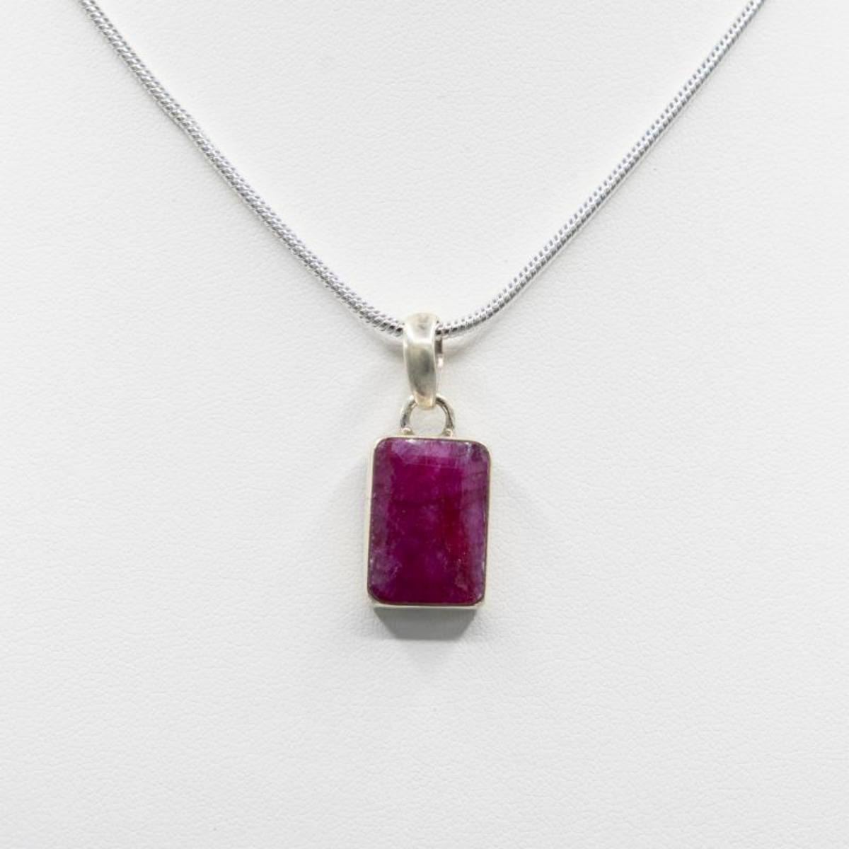 OUTSTANDING 9 CT RUBY PENDANT. GORGEOUS DEEP BURGANDY HUE .MOUNTED SOLID .925 STERLING SILVER. INCLUDES 20" 2 mm CHAIN 72 CTTW. TOTAL GRAM WT IS 14.4 TOTAL GRAMS