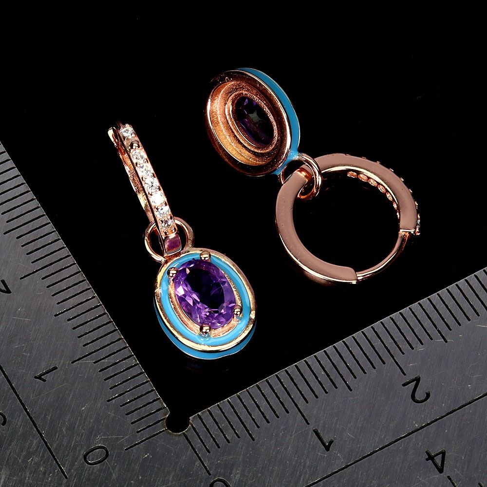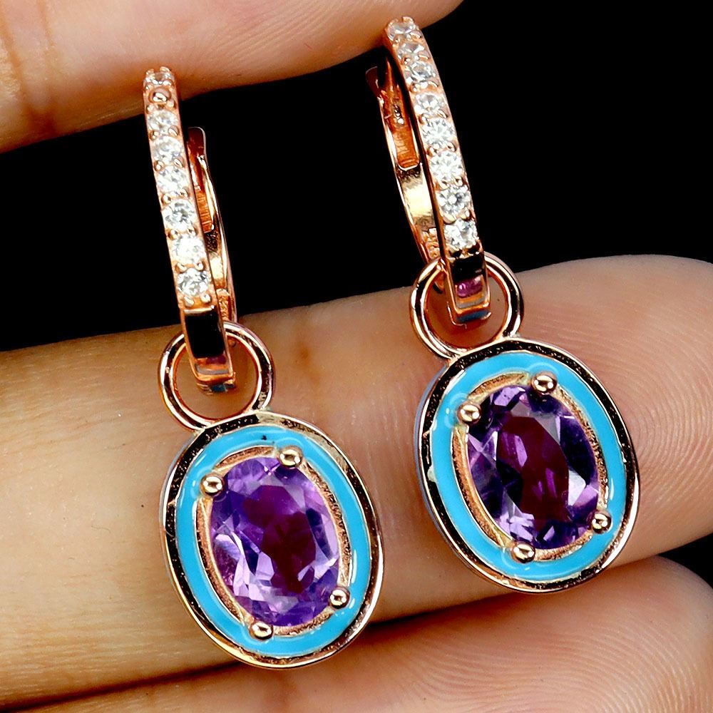OVAL CUT AMETHYST EARRINGS IN 14K ROSE PLATED GOLD OVER 925 STERLING SILVER - APPRAISED REPLACEMENT VALUE
