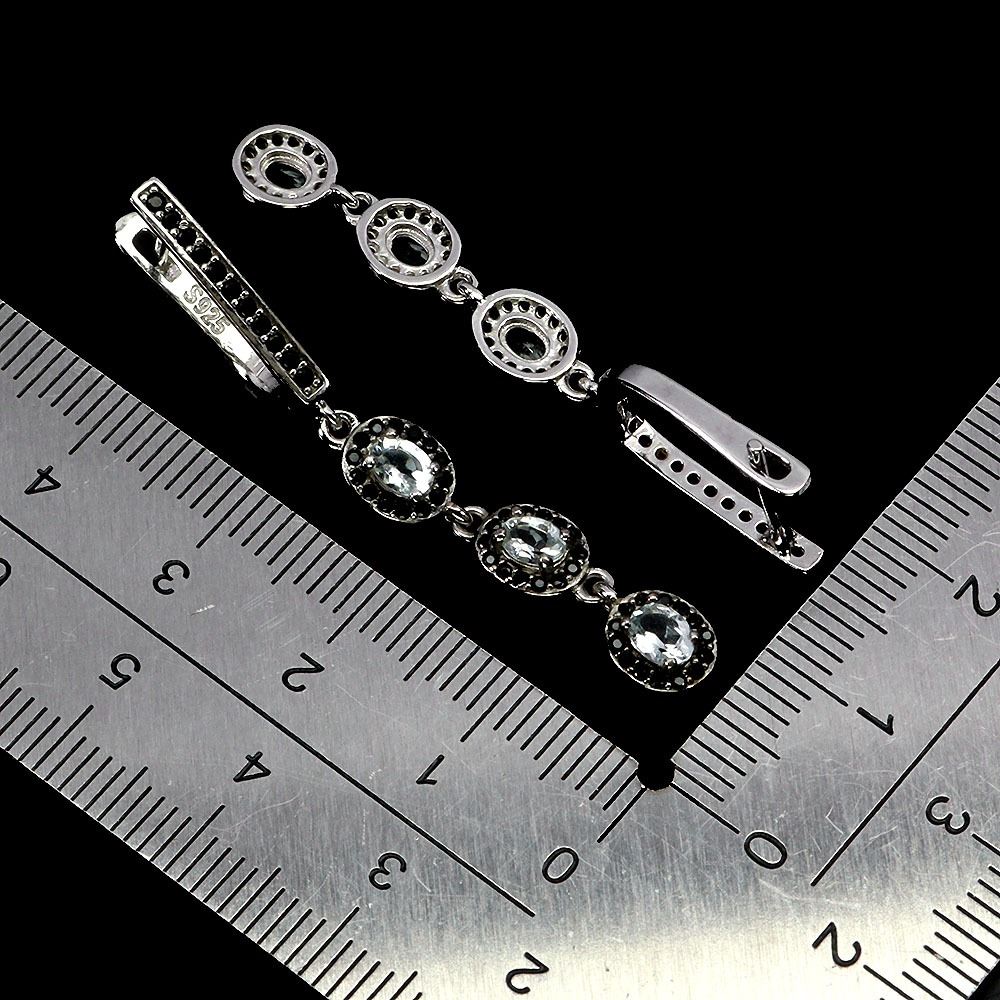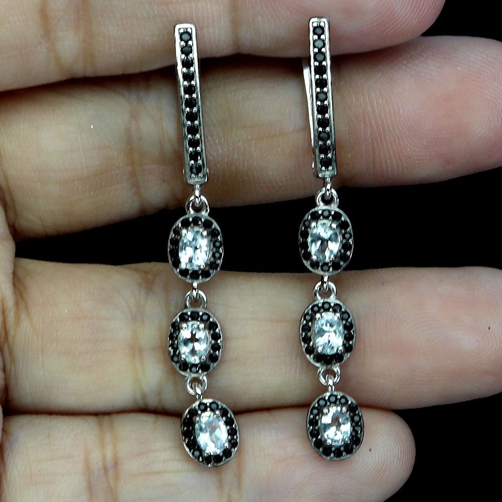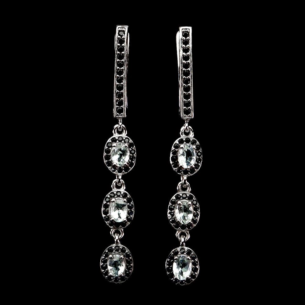 OVAL CUT AQUAMARINE AND BLACK SPINEL EARRINGS IN 14K WHITE PLATED GOLD OVER 925 STERLING SILVER – APPRAISED REPLACEMENT VALUE