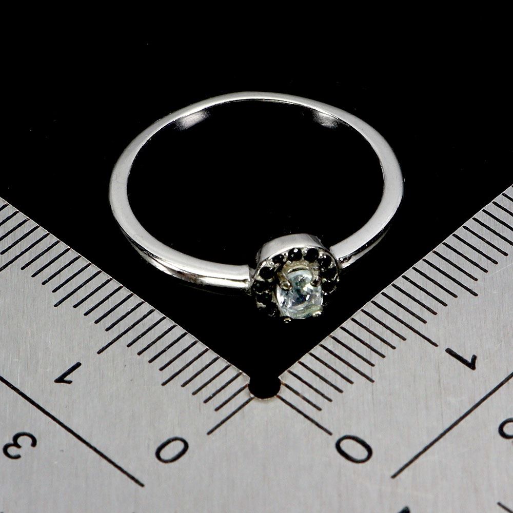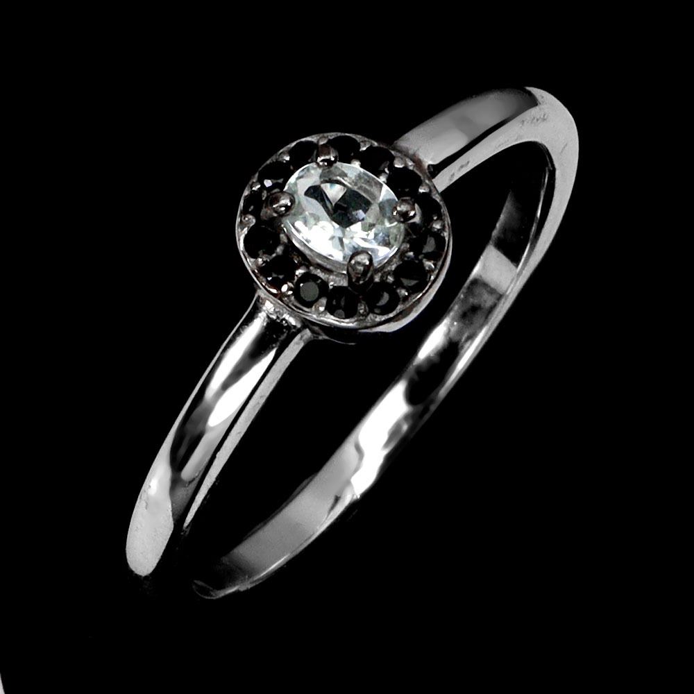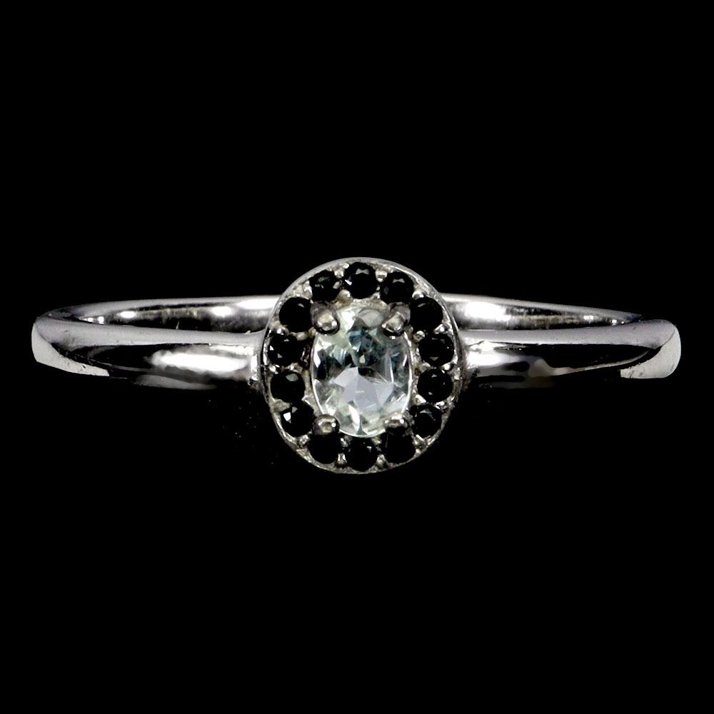 OVAL CUT AQUAMARINE AND BLACK SPINEL RING IN 14K WHITE PLATED GOLD OVER 925 STERLING SILVER – SIZE 7 - APPRAISED REPLACEMENT VALUE