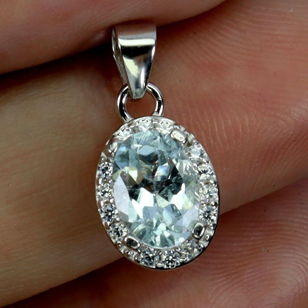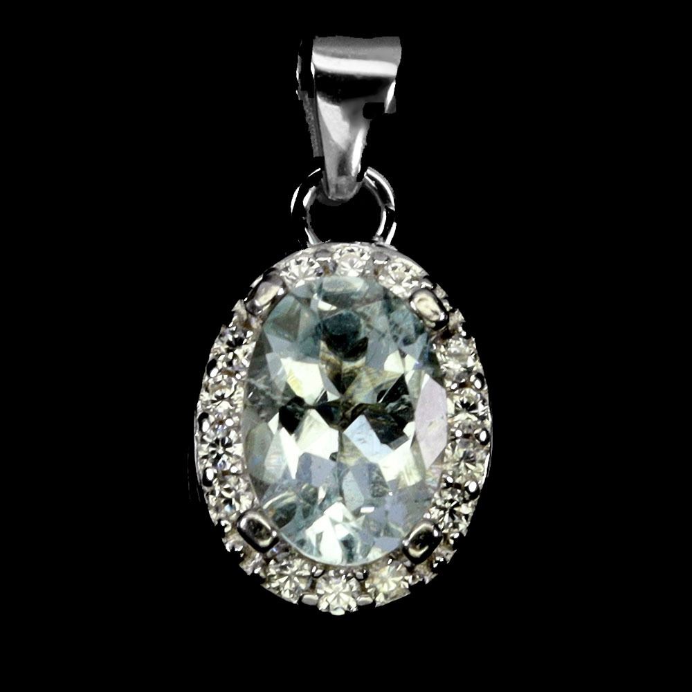 OVAL CUT AQUAMARINE PENDANT IN 14K WHITE PLATED GOLD OVER 925 STERLING SILVER - APPRAISED REPLACEMENT VALUE